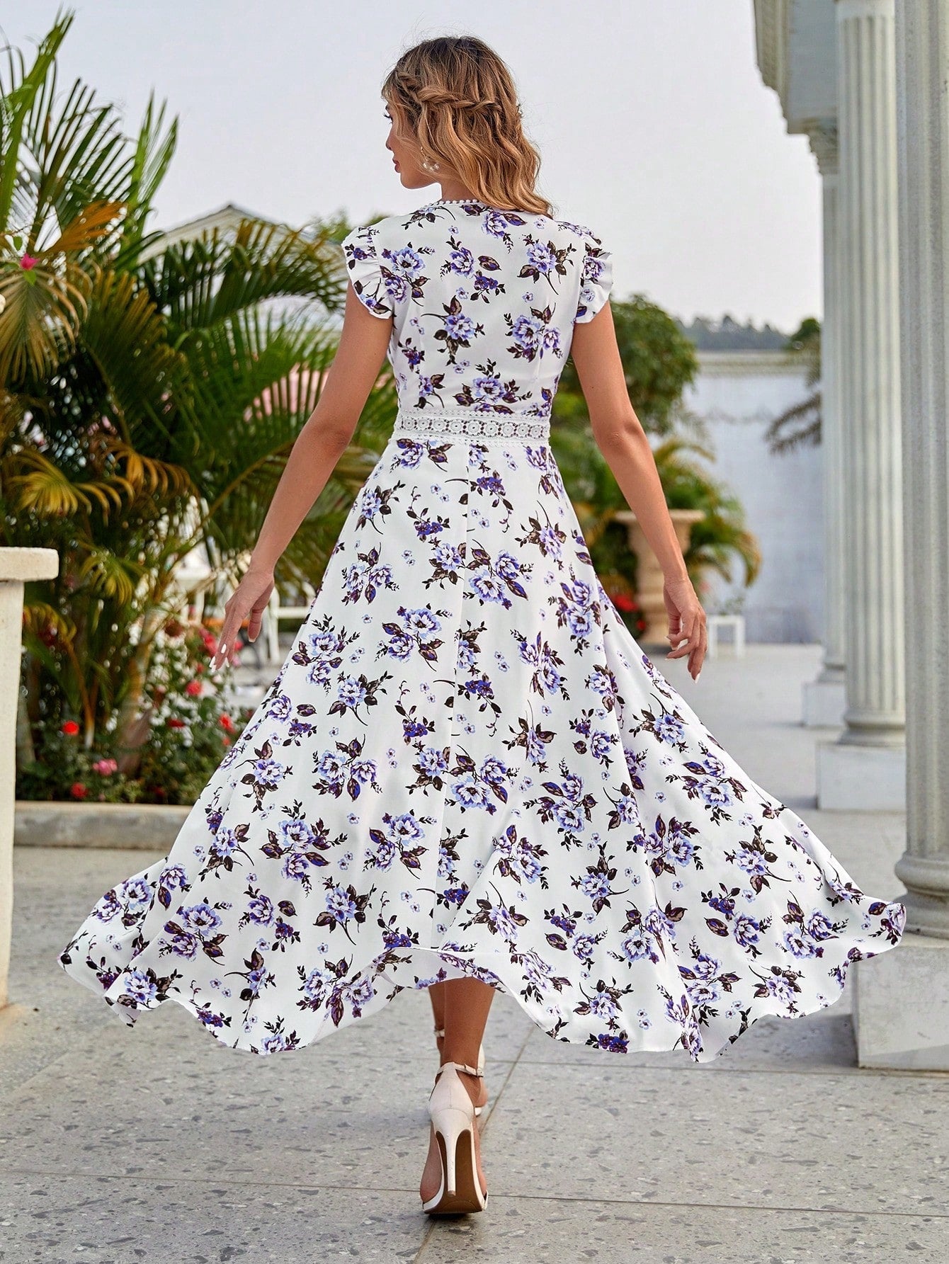 Colore : Multicolore Stile : Bohemien Tipo di motivo : Floreale, stampa dappertutto Tipo : A linea Dettaglio : Pizzo a contrasto, Alto Basso, Volanti Scollatura : Scollatura a V...