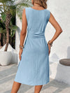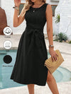 Abito a trapezio senza maniche, semplice e cinturato per signore