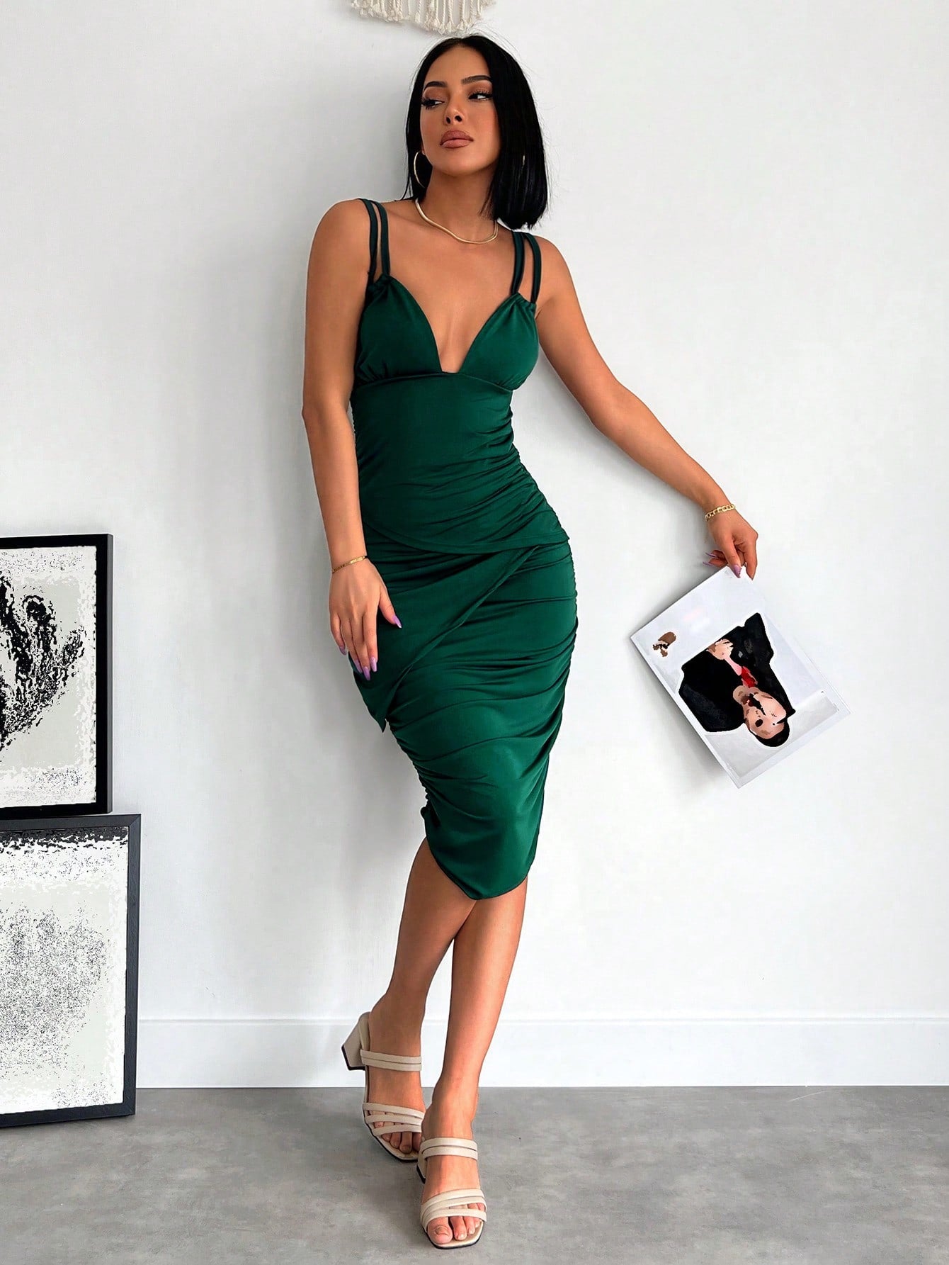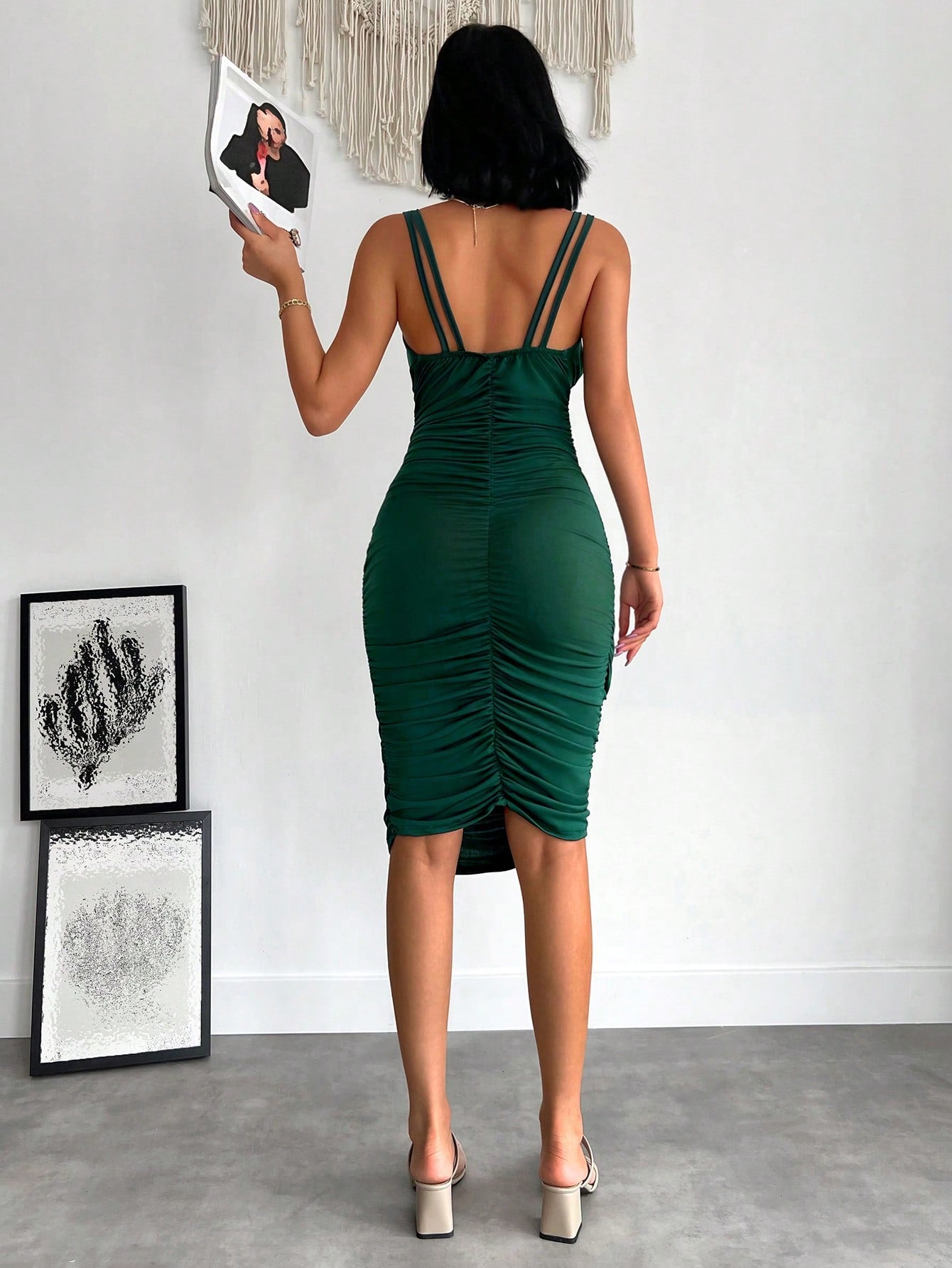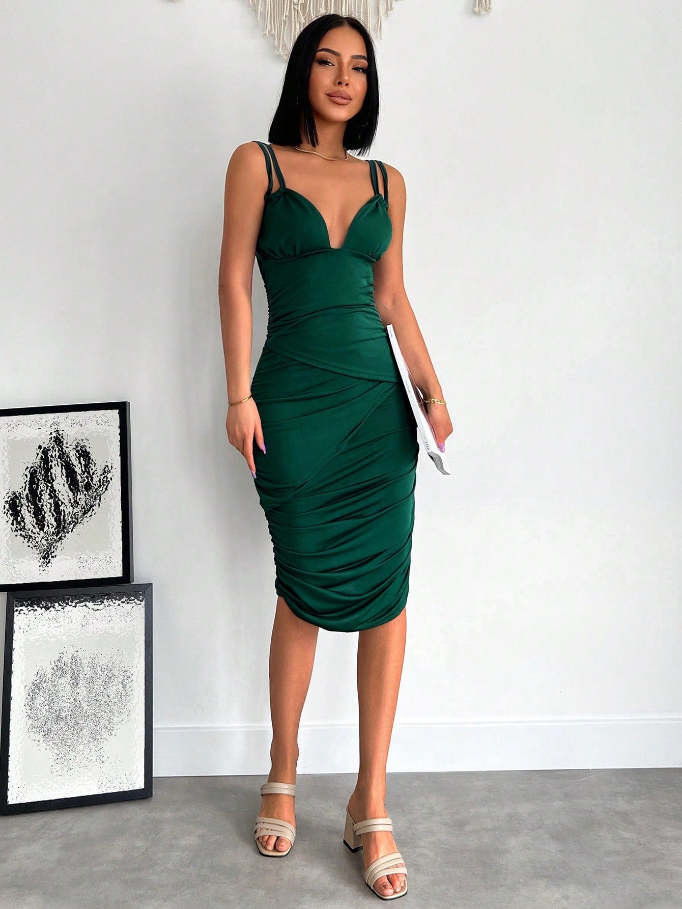 Dettaglio : Schiena scoperta, Plissettato, CernieraTipo : CamiStile : EleganteLinea vita : Vita normaleOrlo/ Forma : MatitaTipo di motivo : Colore unicoScollatura : Spalline sottiliColore : Verde ScuroLunghezza manica :...