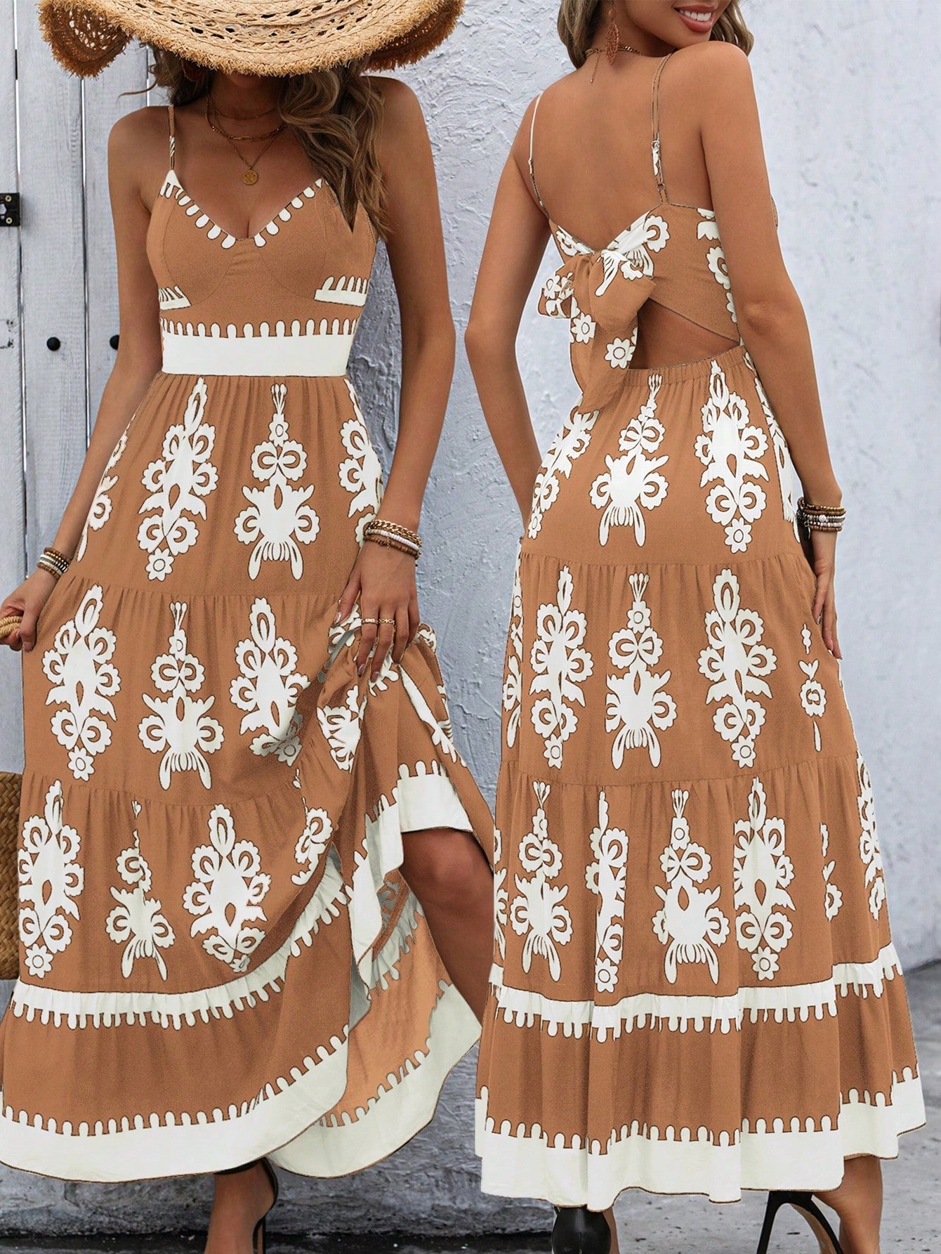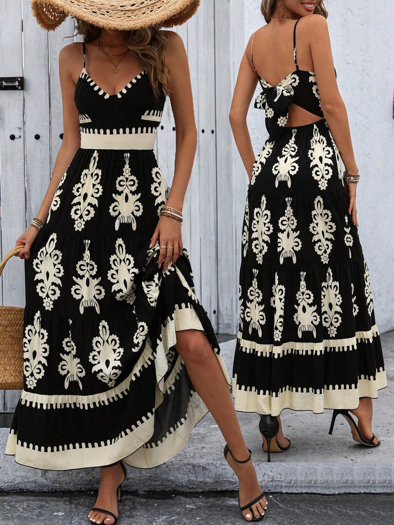 Colore : neroStile : BohemienTipo di motivo : Blocchi di colore, Floreale, PianteTipo : CamiDettaglio : Schiena scopertaScollatura : Spalline sottiliLunghezza manica : Senza manicheTipo di montaggio : Forma normaleLunghezza...