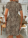 Abito estivo a maniche corte con scollo a V e stampa leopardata con un design a torsione