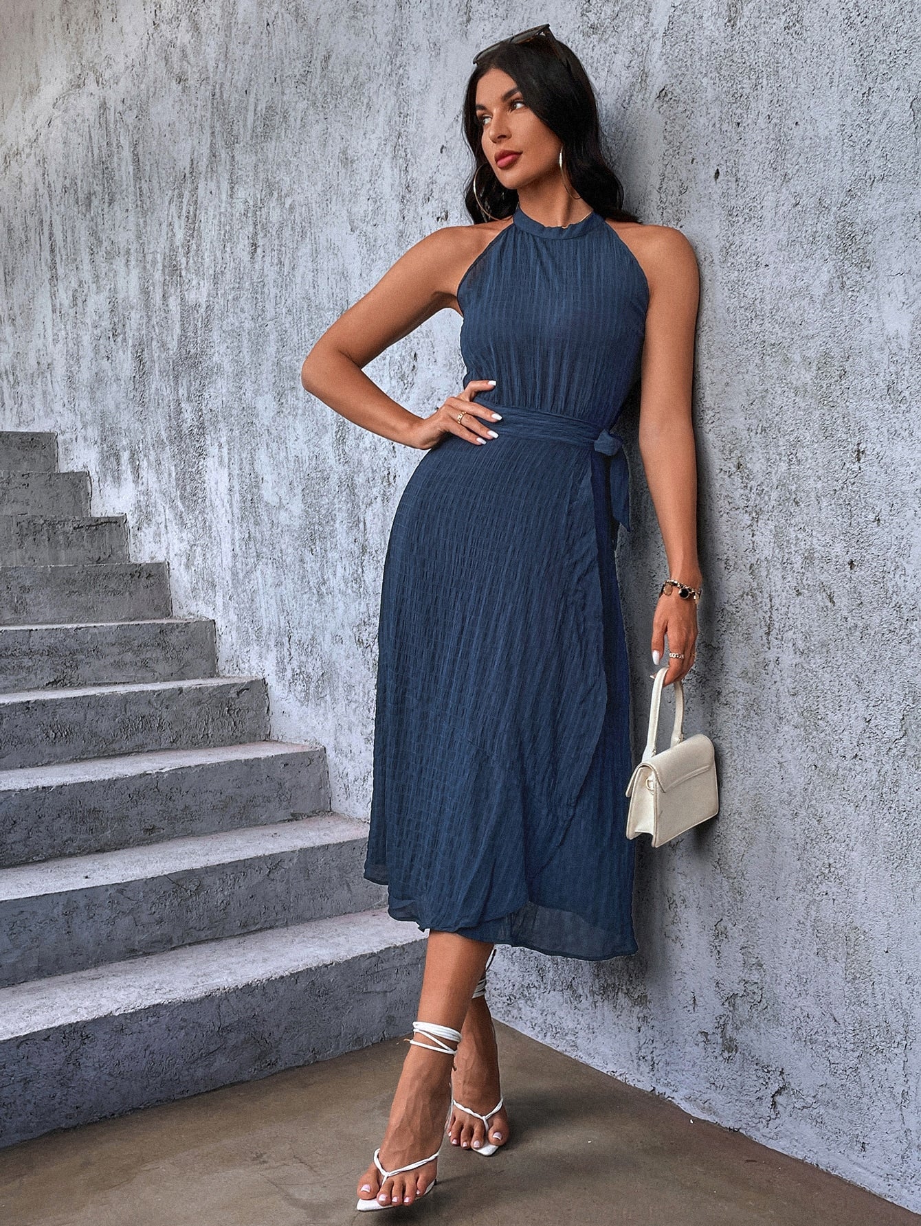 Tipo : A lineaStile : CasualScollatura : HalterLinea vita : Vita altaTipo di motivo : Colore unicoDettaglio : avvolgenteOrlo/ Forma : avvolgenteFodera : FoderatoColore : Blu NavyLunghezza manica : Senza...