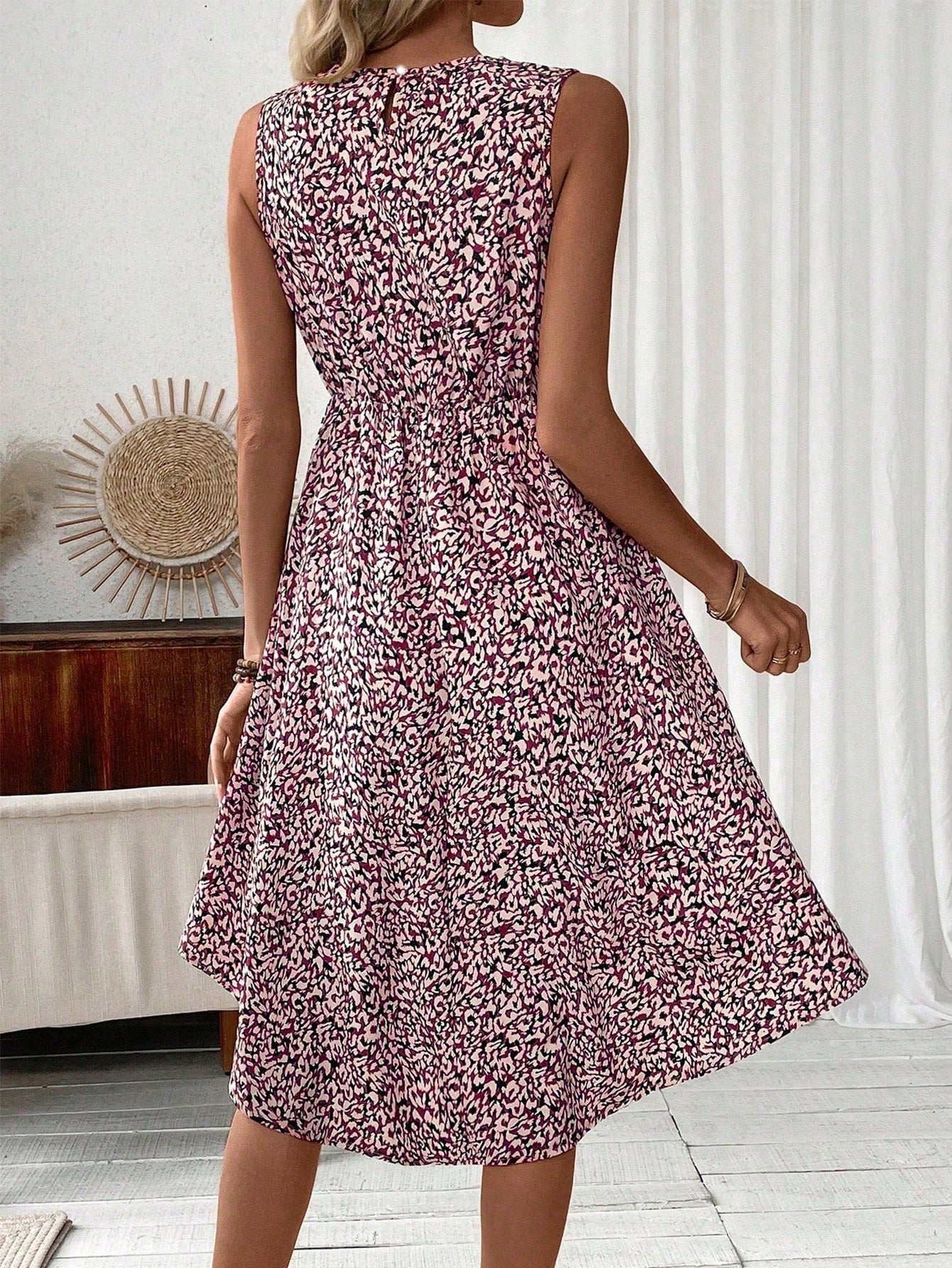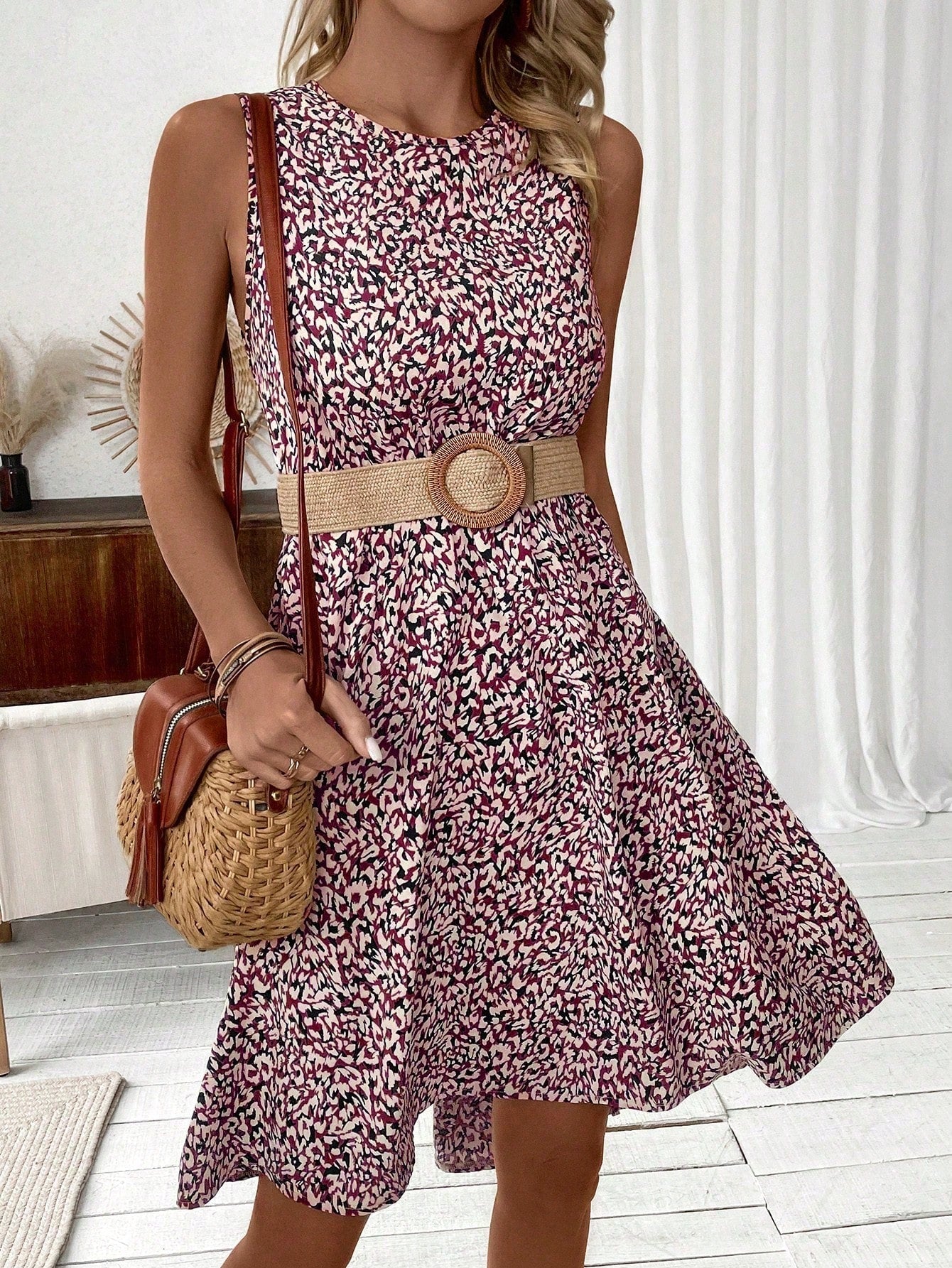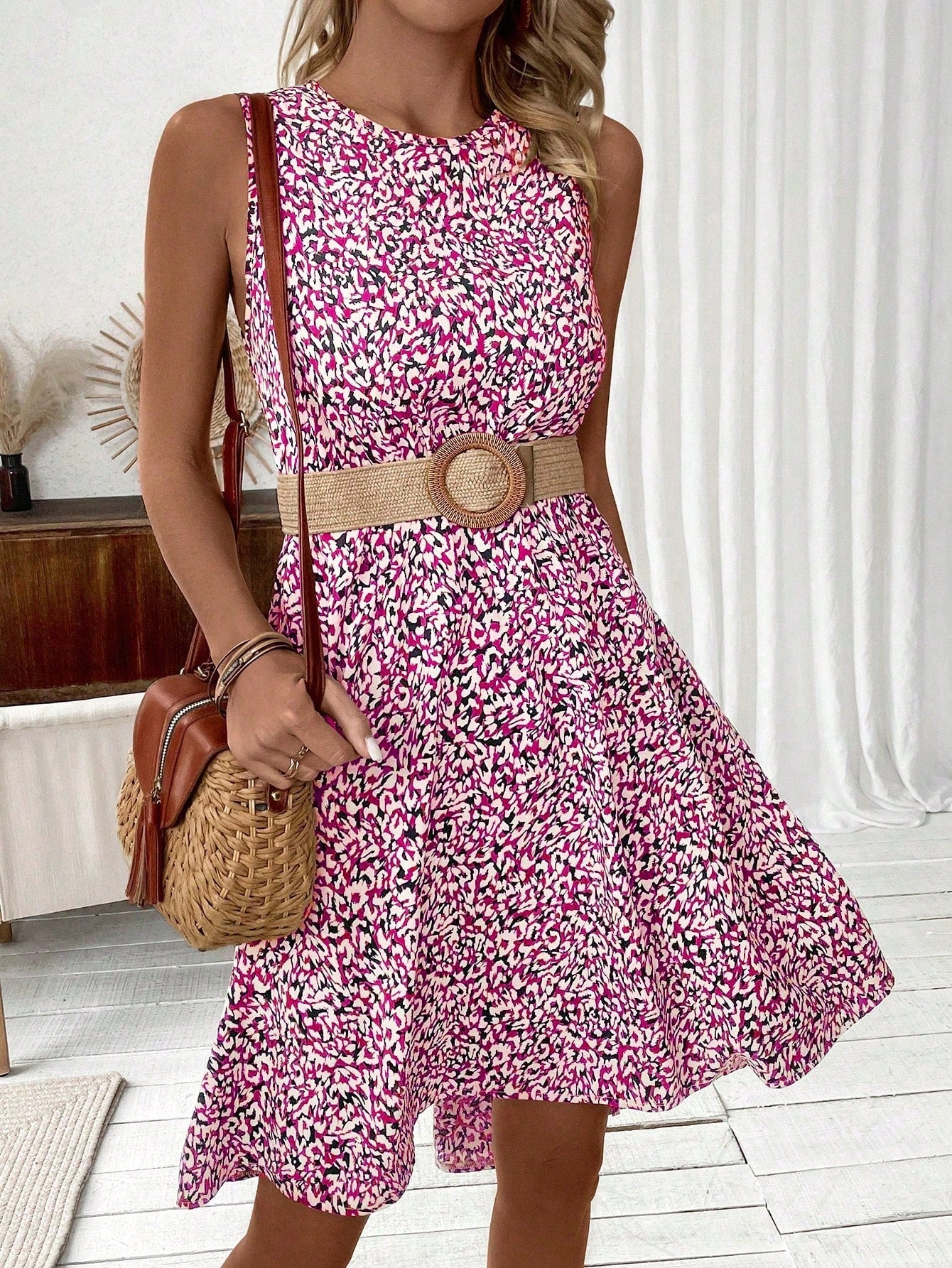 Abito Senza Maniche Con Stampa Completa Per Donna Senza Cintura Alla Vita