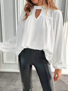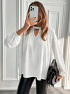 Blusa a maniche lunghe in colore tinta unita con pieghe per donne