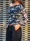 Blusa asimmetrica con collo in stile retr˜ Tintura a nodi
