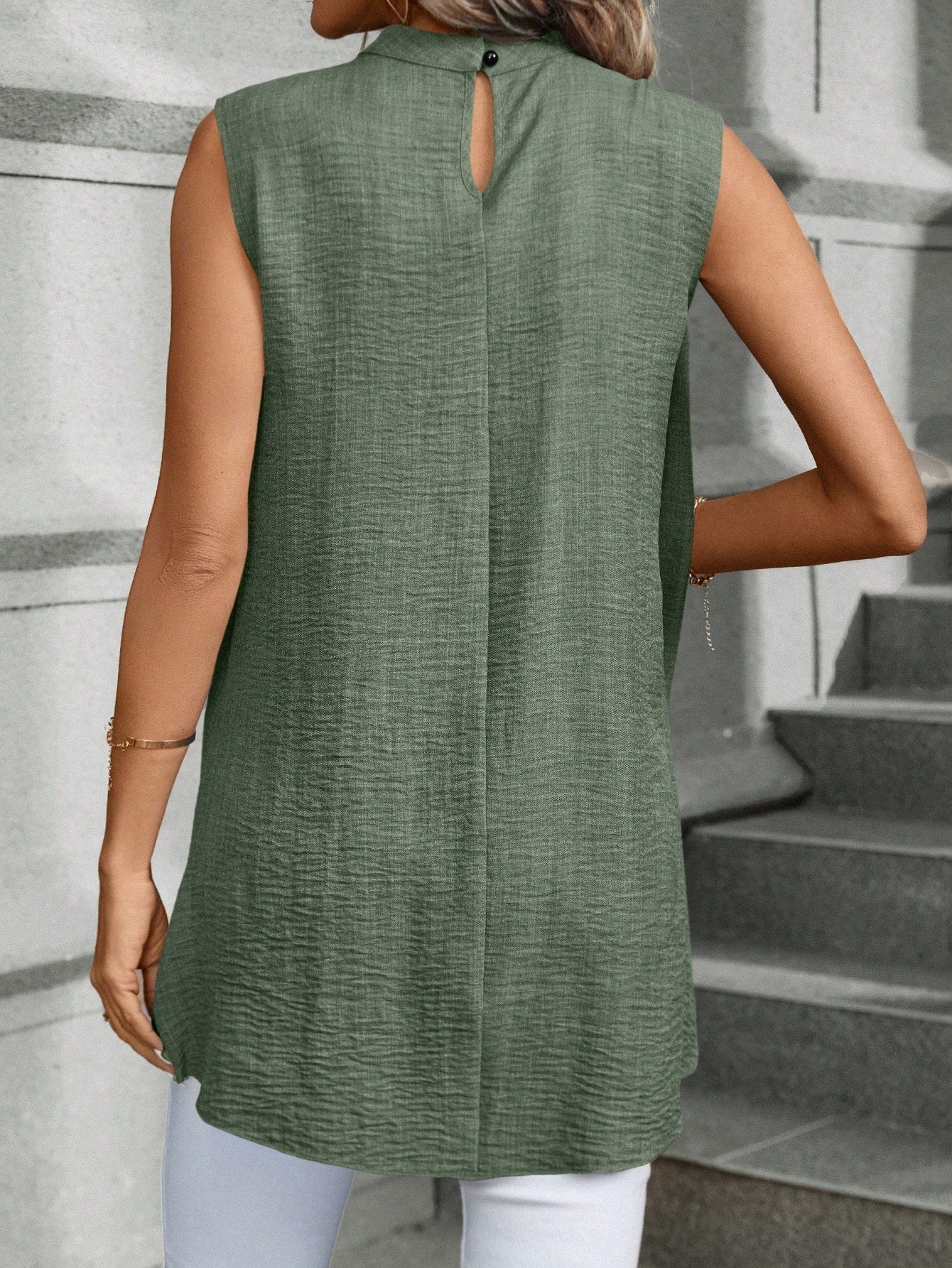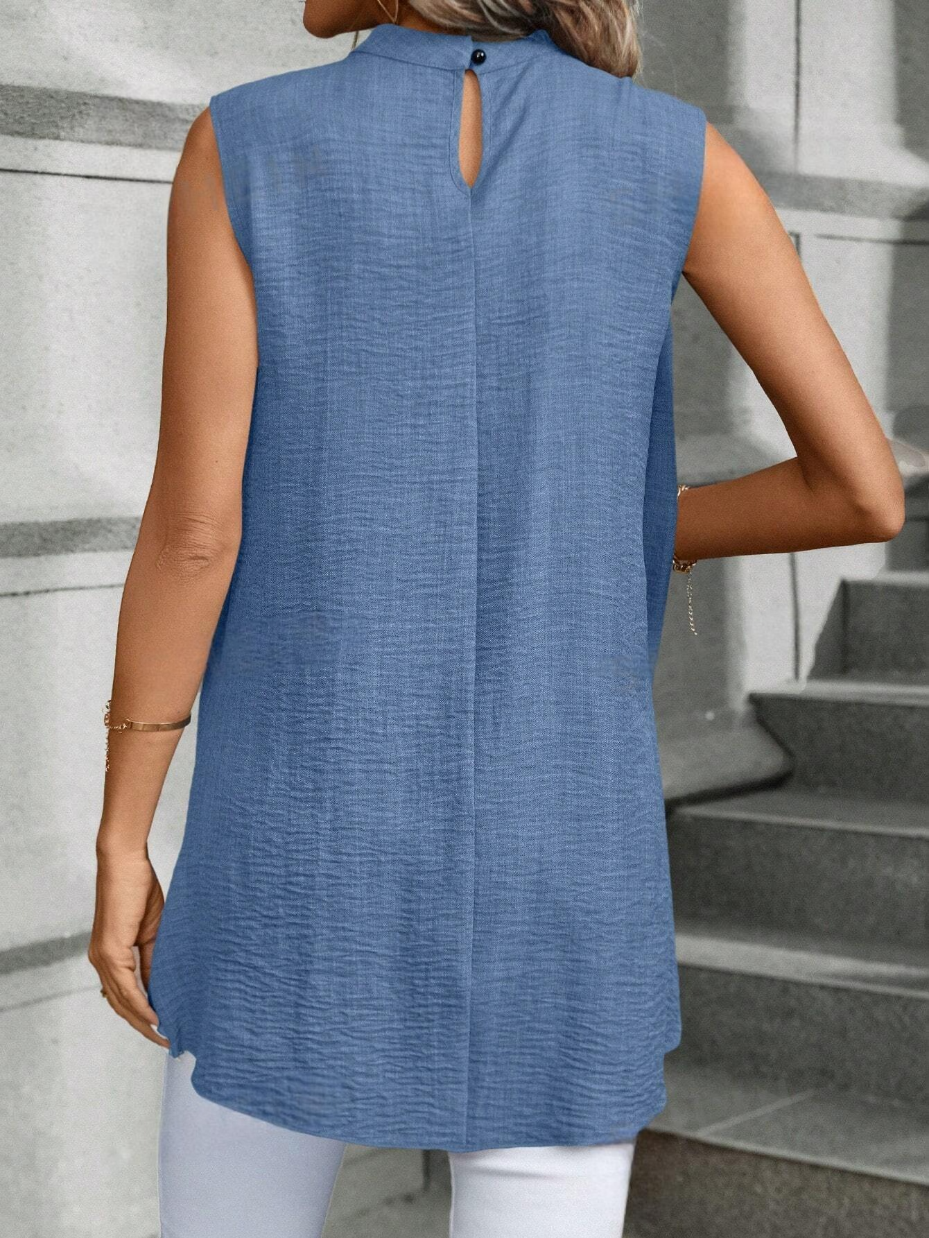 Blusa Da Donna Senza Maniche Con Colletto Alto E Orlo Asimmetrico