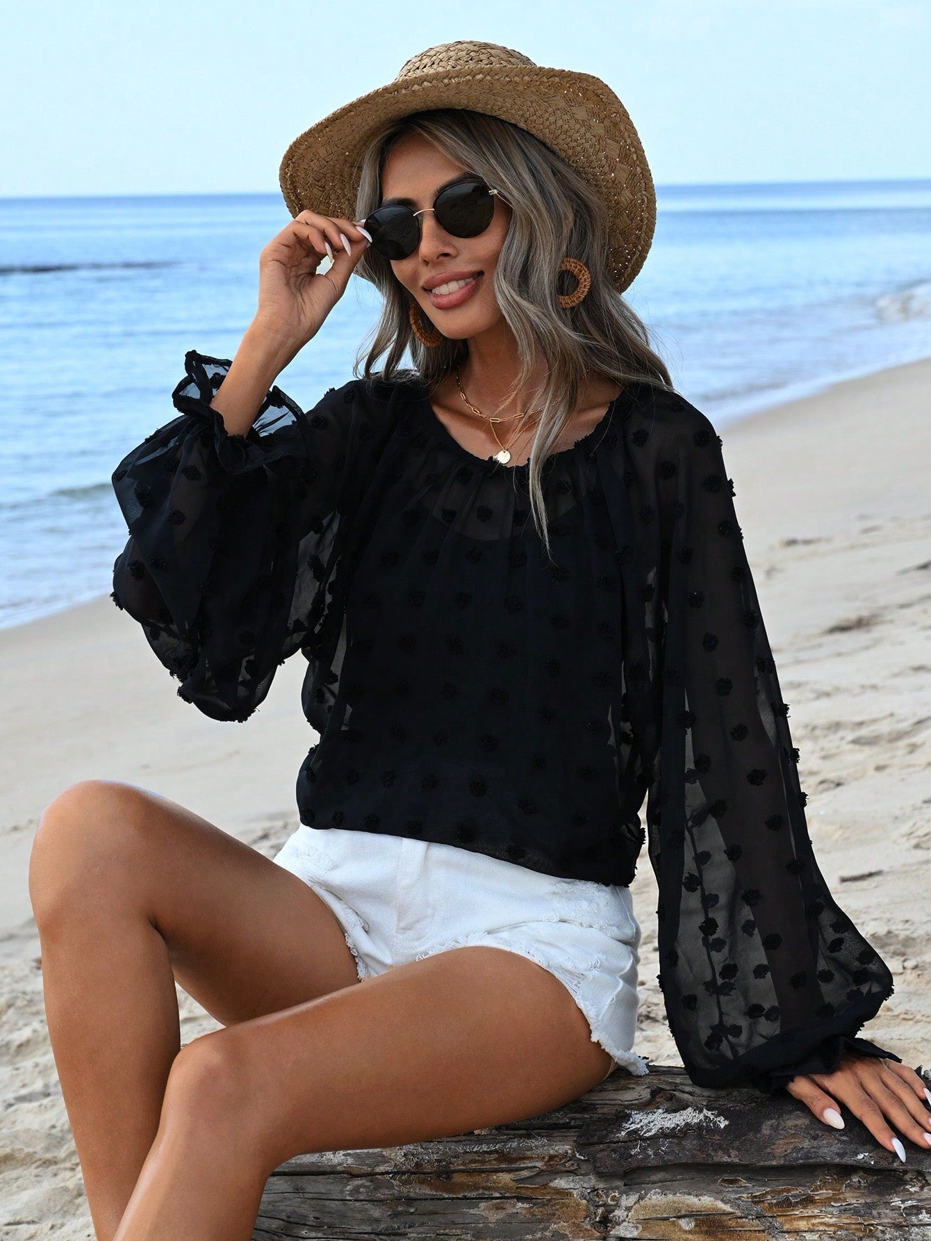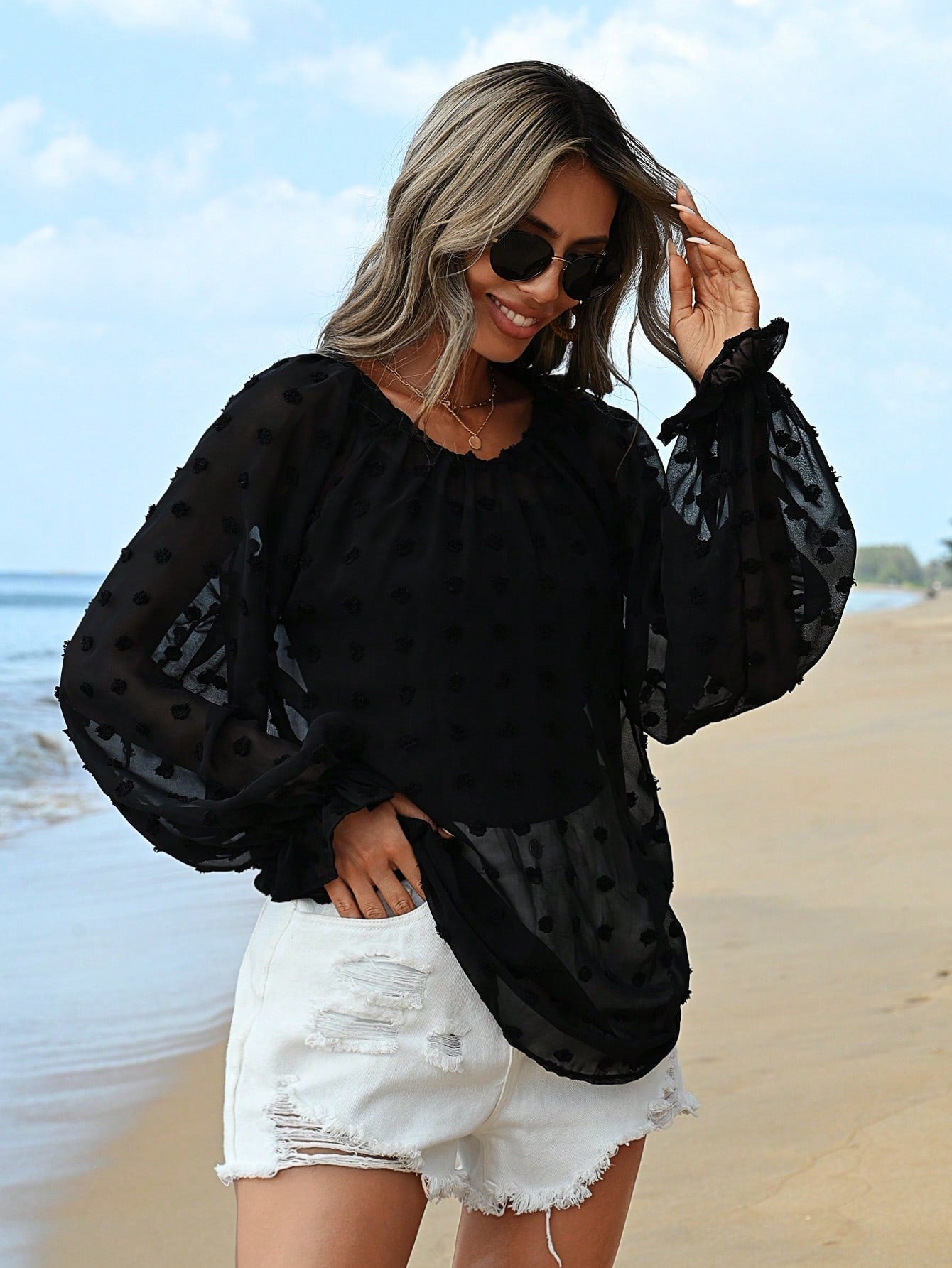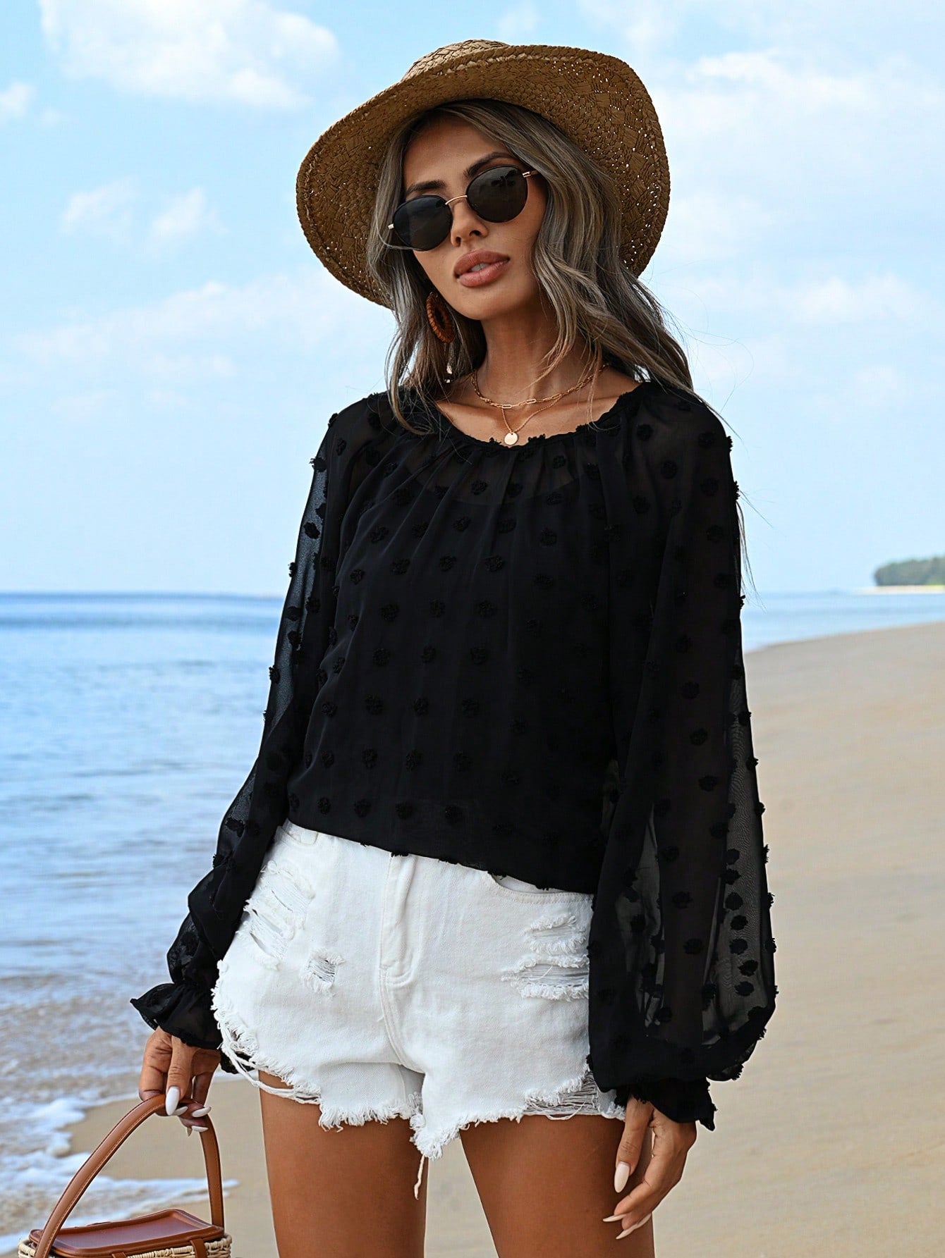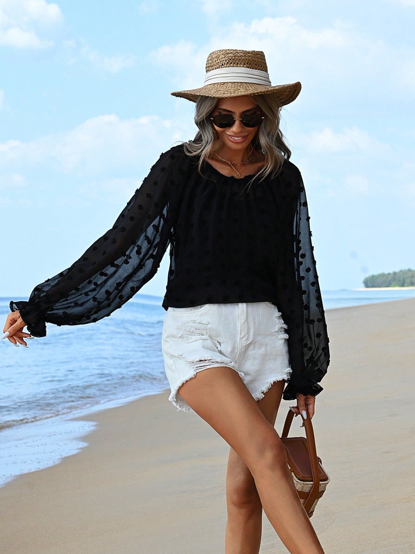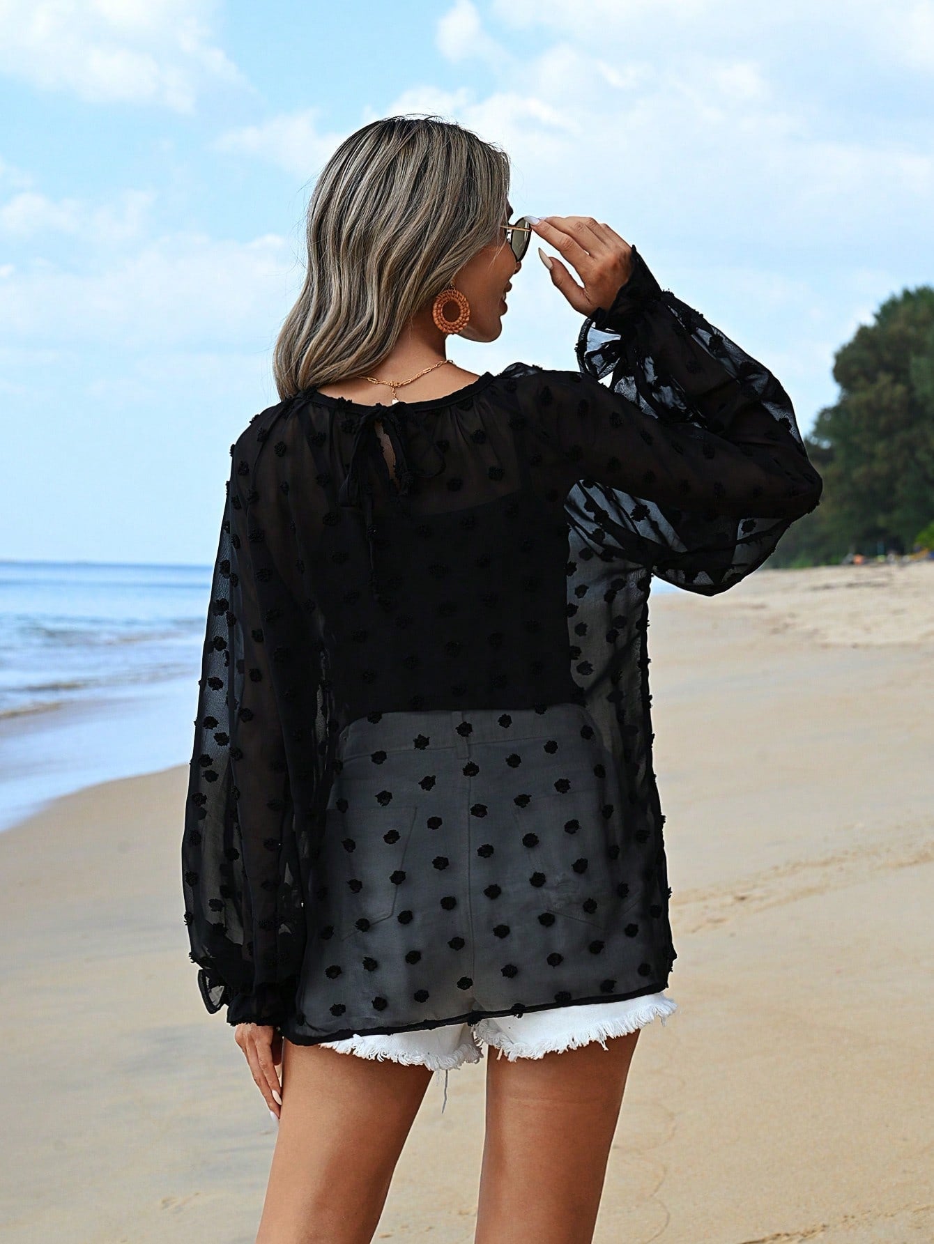 Dettaglio : Volanti, Trasparenza, VolantiStile : CasualTipo di motivo : Colore unicoTipo : TopColore : neroOrlo/ Forma : ClassicoTipo di manica : Maniche BishopScollatura : Scollo rotondoTipo di montaggio :...