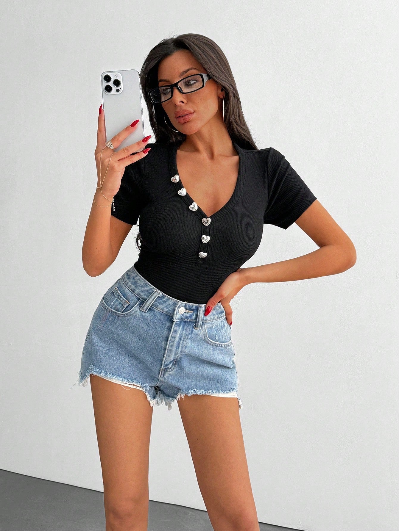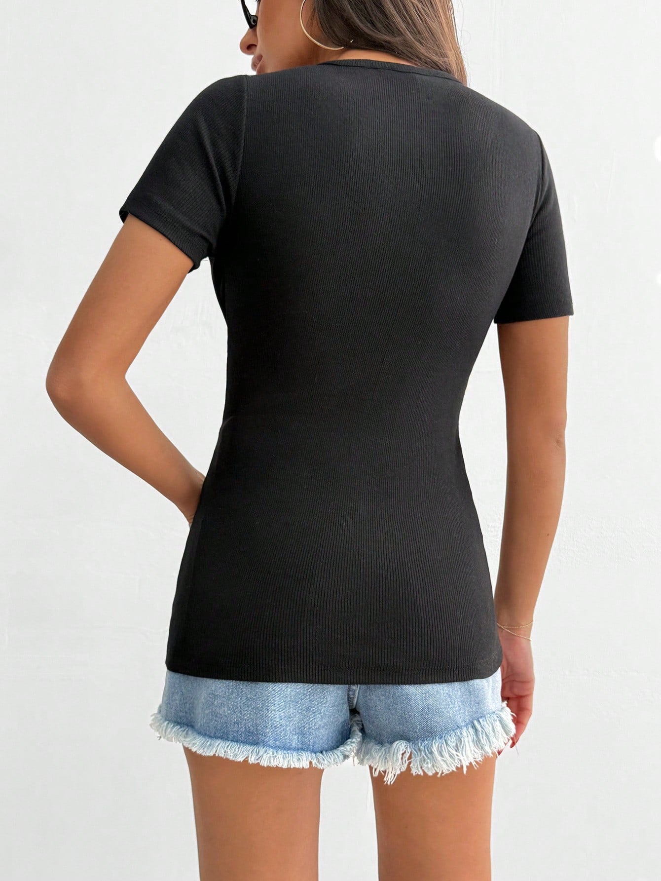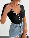 Top a costine da donna con dettaglio a bottone a forma di cuore