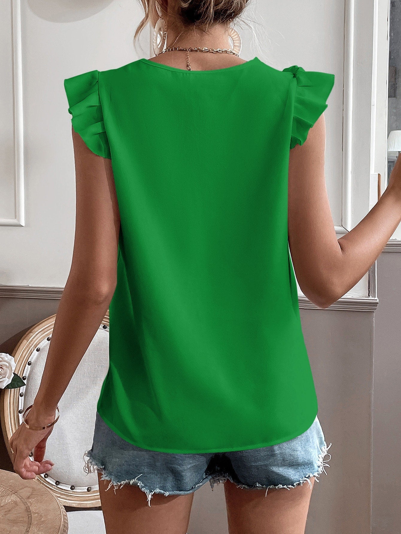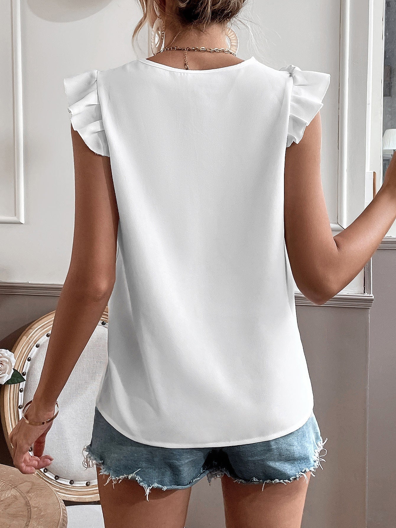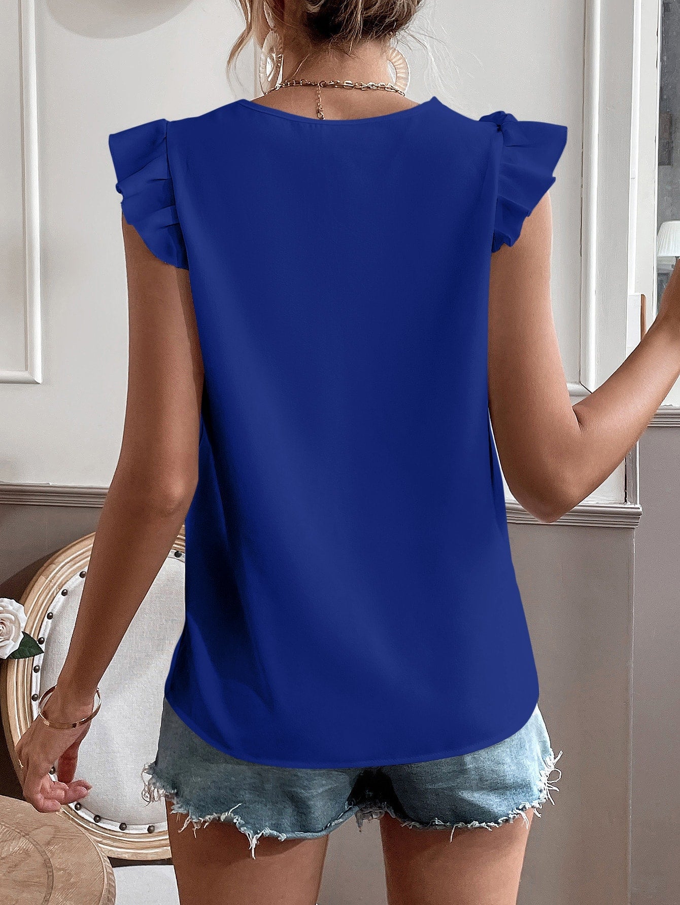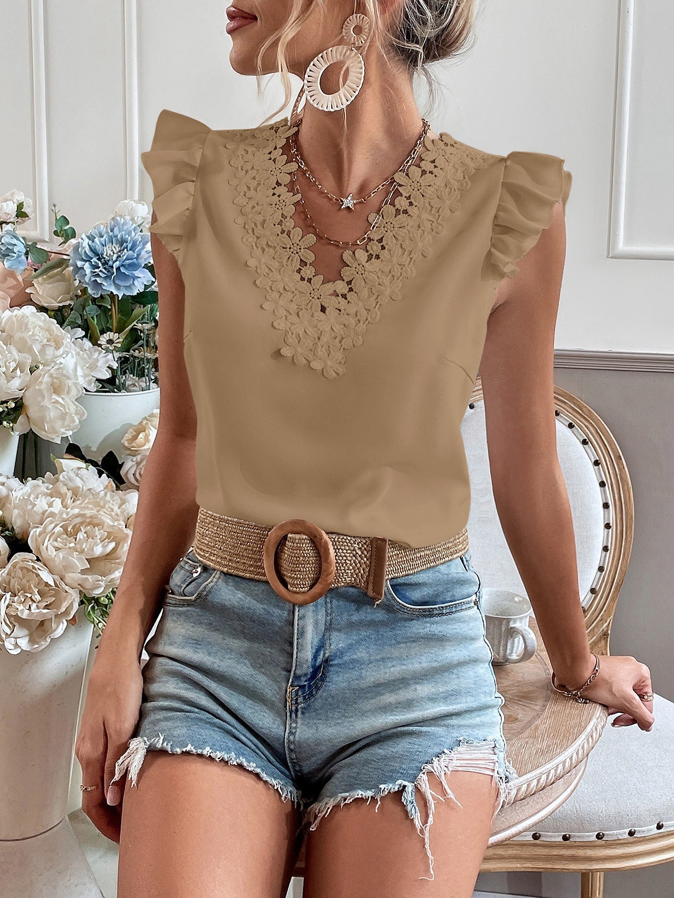 Colore : celesteStile : EleganteTipo di motivo : Colore unicoTipo : TopDettaglio : Volanti, Pizzo a contrastoLunghezza manica : Manica ad alettaScollatura : Scollatura a VTipo di manica : SvasataLunghezza...