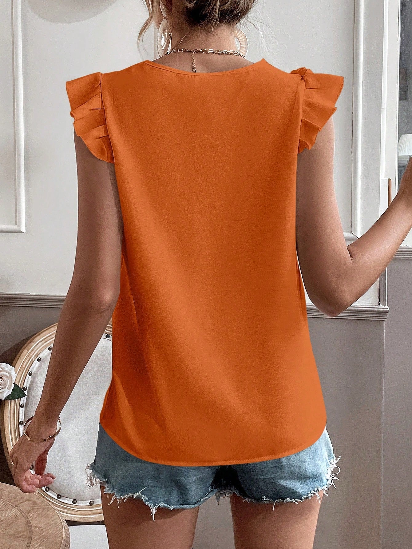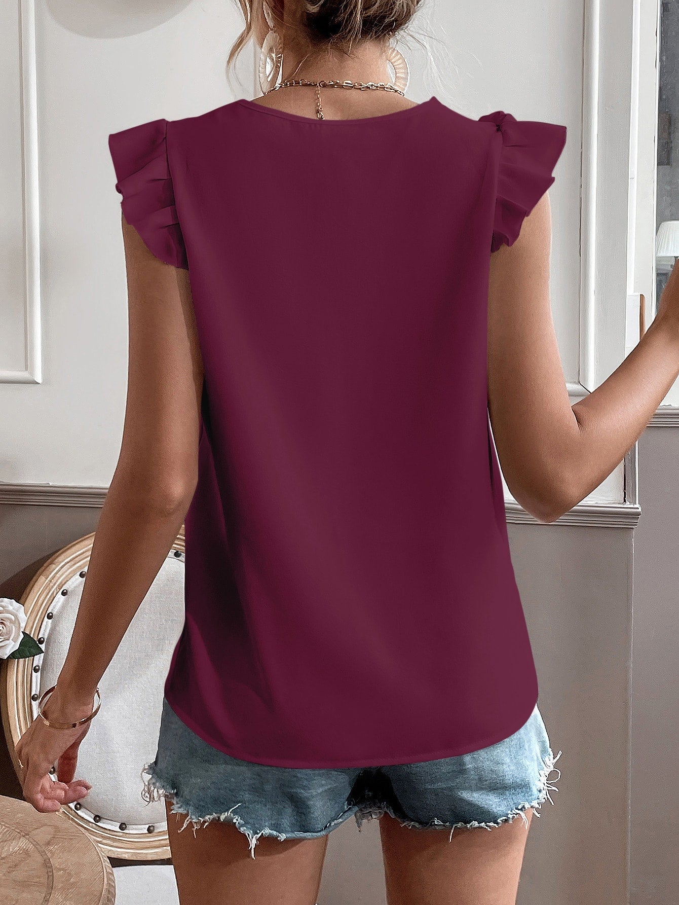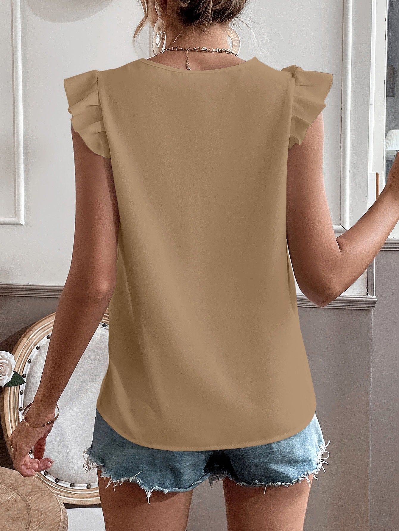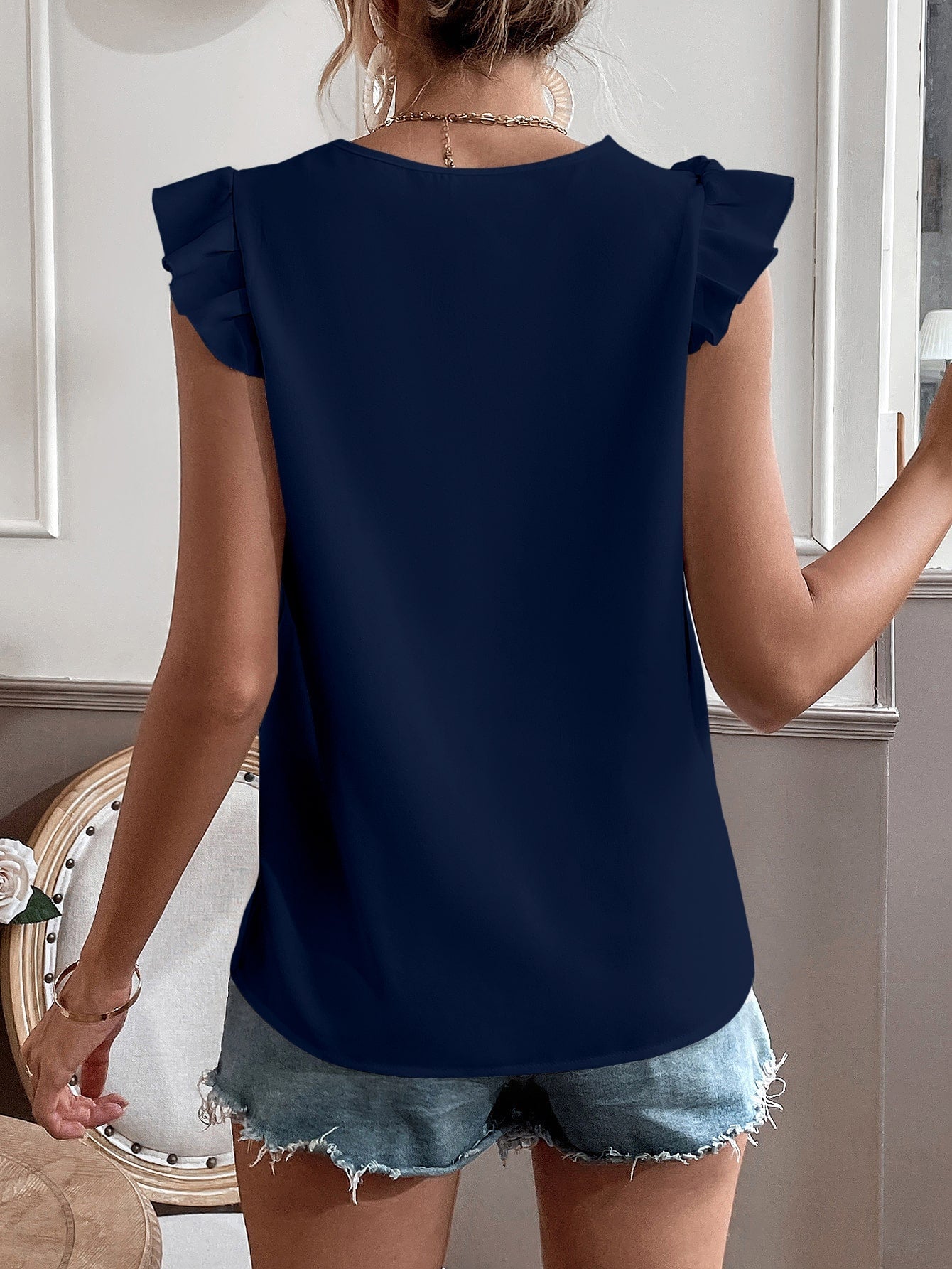 Colore : celesteStile : EleganteTipo di motivo : Colore unicoTipo : TopDettaglio : Volanti, Pizzo a contrastoLunghezza manica : Manica ad alettaScollatura : Scollatura a VTipo di manica : SvasataLunghezza...