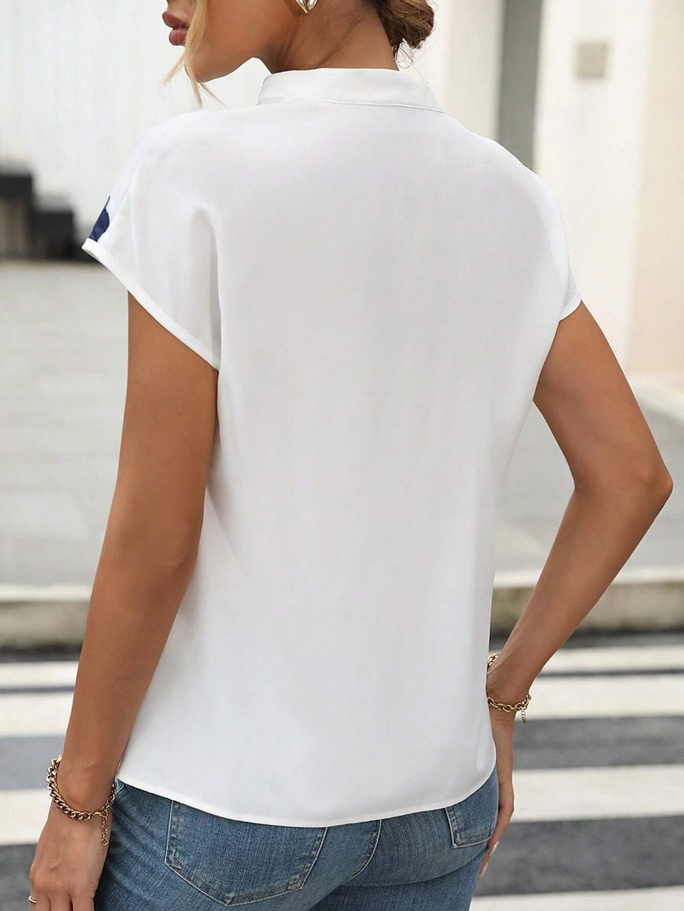 Colore : Bianco Stile : Casual Tipo di motivo : Floreale Tipo : Top Scollatura : Scollo a V dentellato Lunghezza manica : Maniche Corte Tipo di manica : Pipistrello...