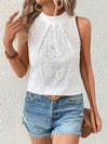 Camicetta senza maniche ricamo ad occhielli apertura a goccia indietro