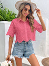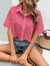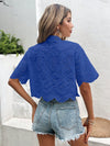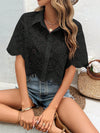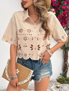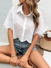 Camicia a maniche corte ricamata con bottoni frontali, semplice e traforata