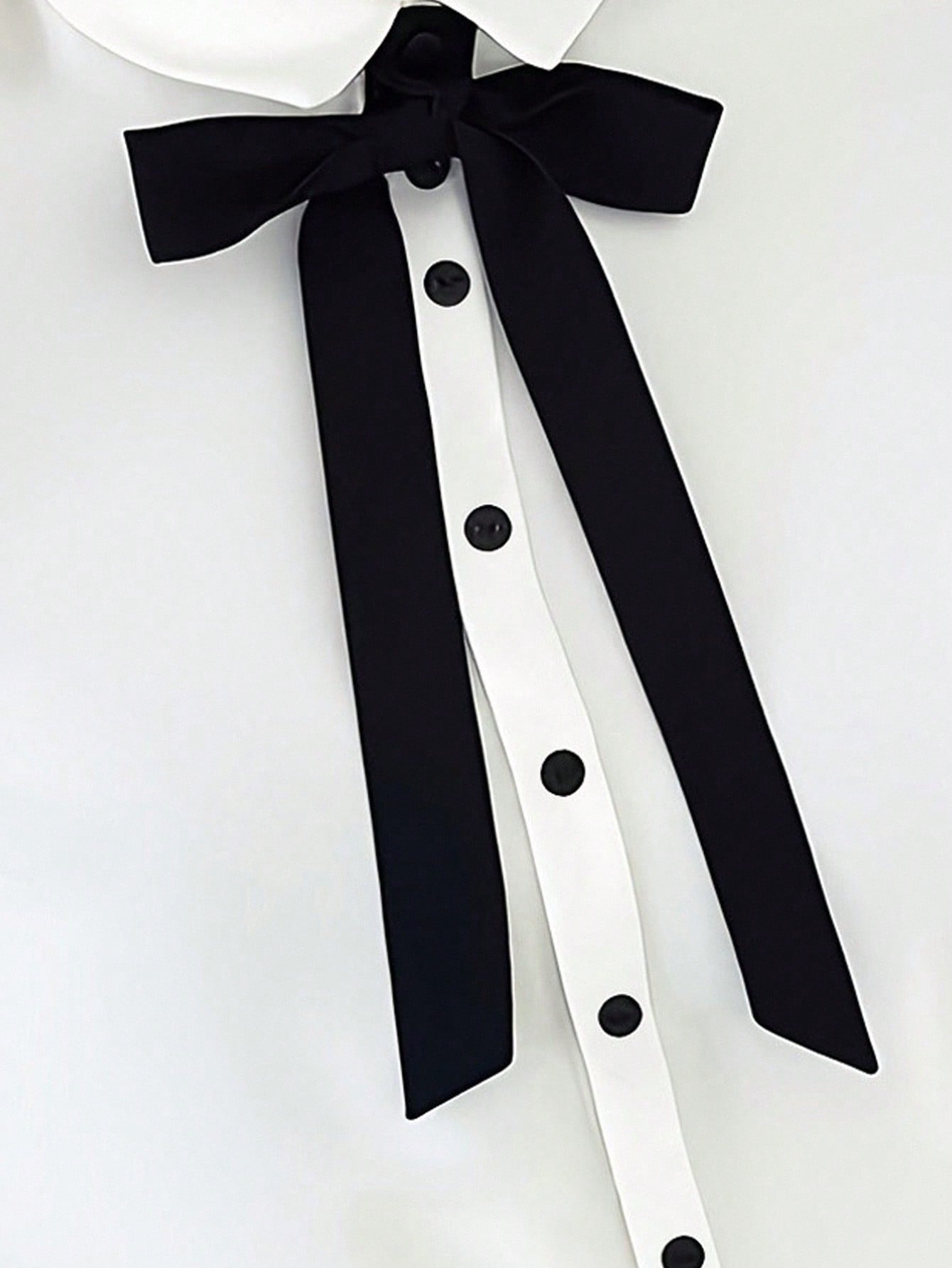 Colore : BiancoStile : EleganteTipo di motivo : Blocchi di colore, Colore unicoTipo : CamiciaLunghezza manica : Manica lungaScollatura : Nodo al colloTipo di manica : ClassicaLunghezza : ClassicoTipo di...