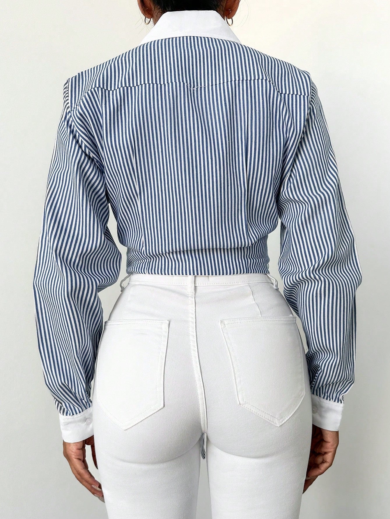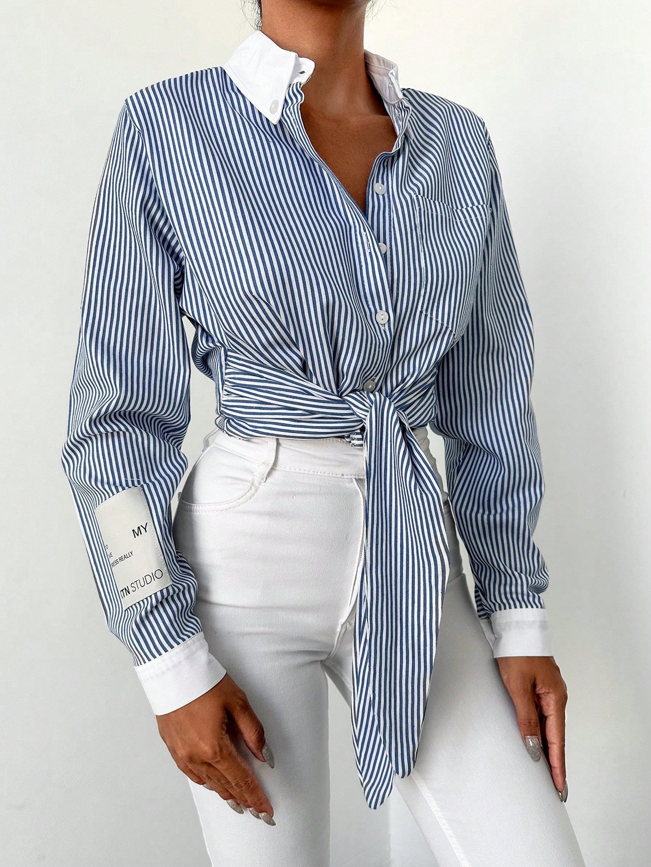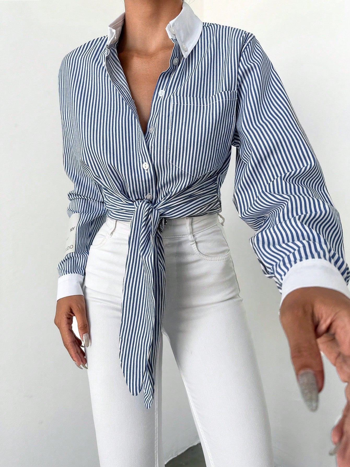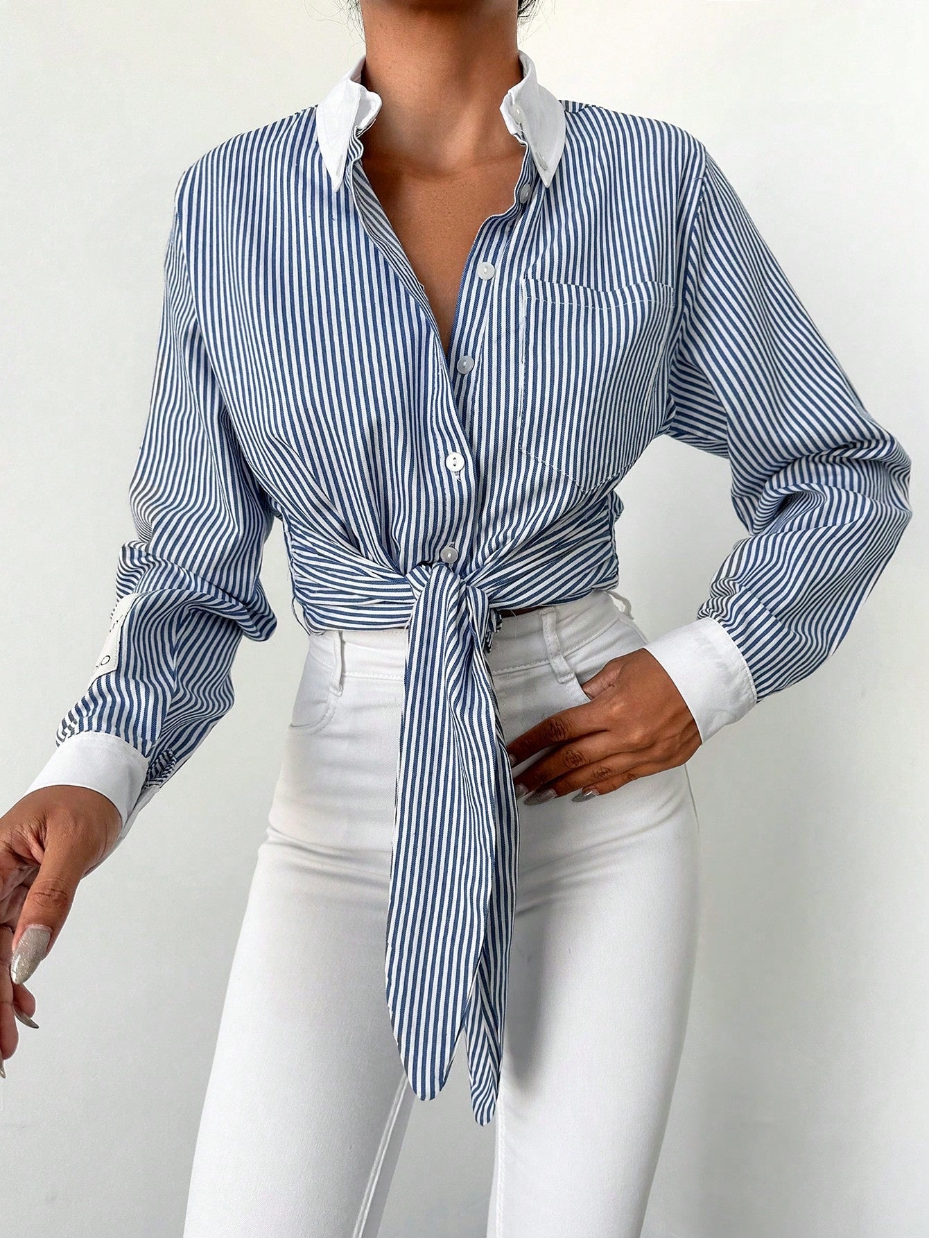 Stile : CasualDettaglio : Bottoni, NodoFoderato per un maggiore calore : NonTipo : CamiciaTipo di motivo : A strisceFodera : SfoderatoColore : BluOrlo/ Forma : ClassicoTipo di manica : ClassicaScollatura...
