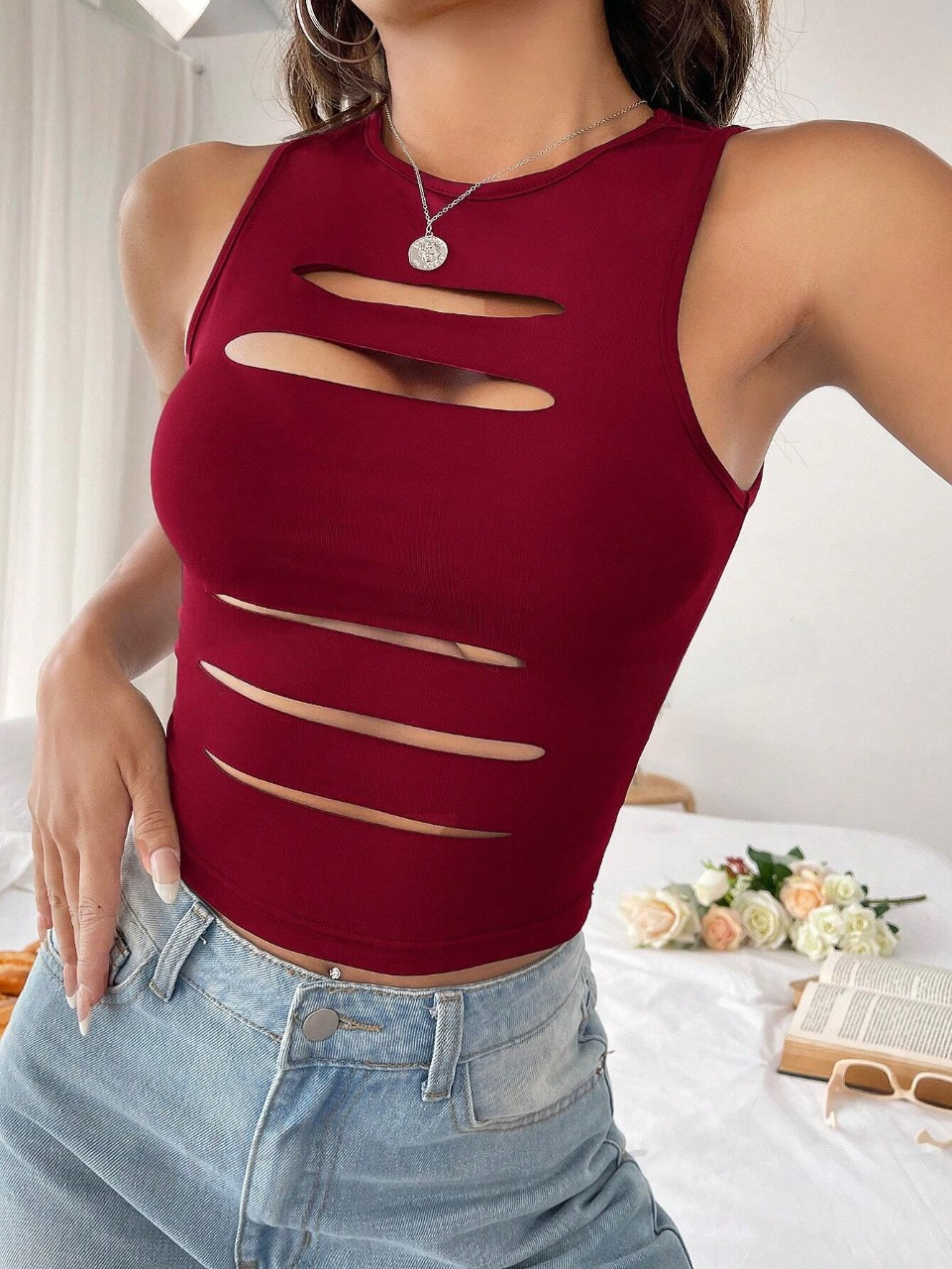 Canotta Solida A Colori Con Lavorazione Traforata