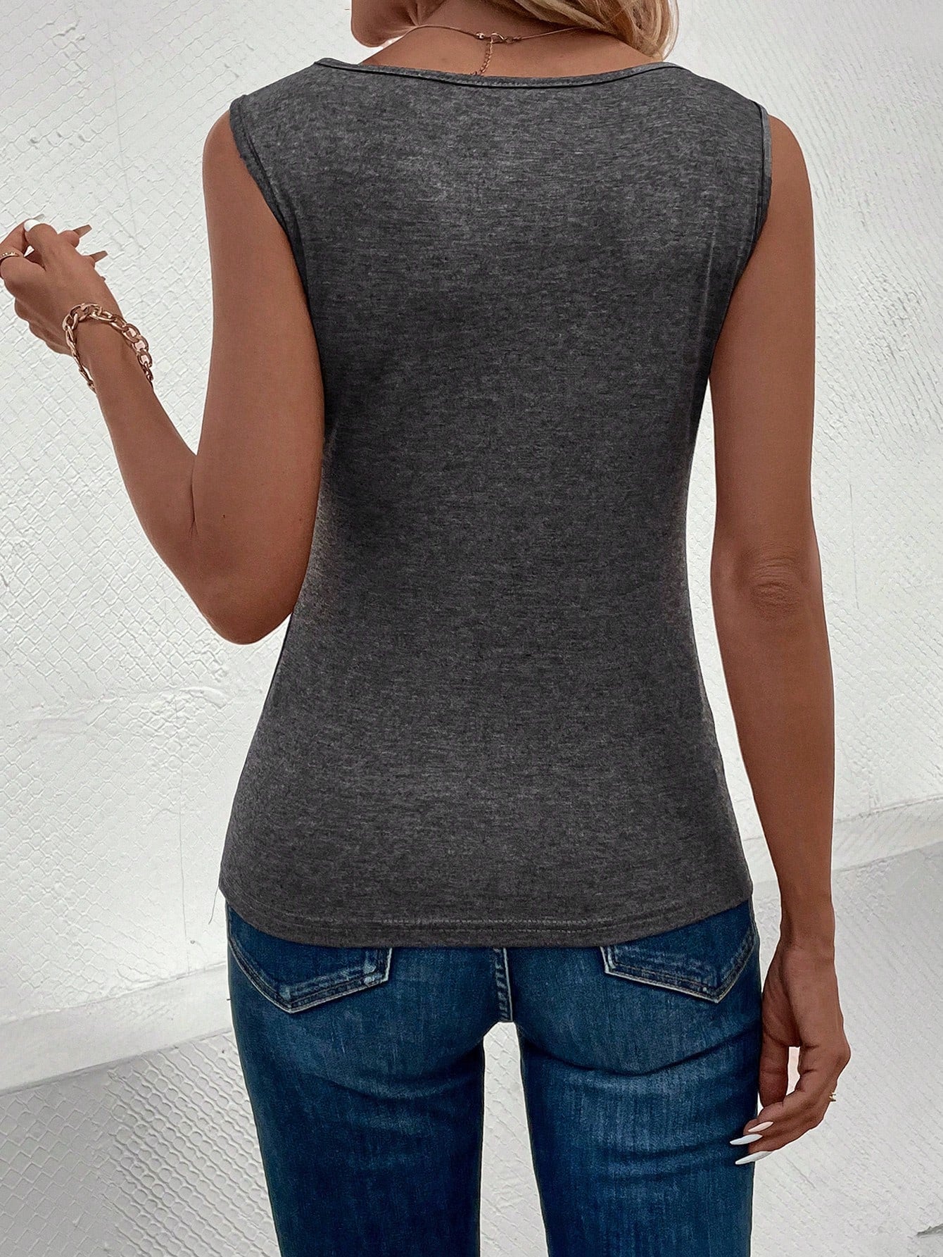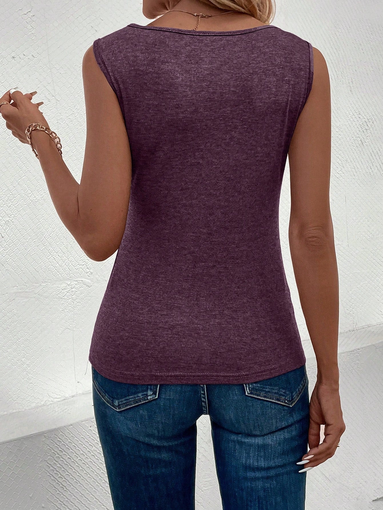 Canottiera Da Donna A Maniche Corte Tinta Unita Per L'estate