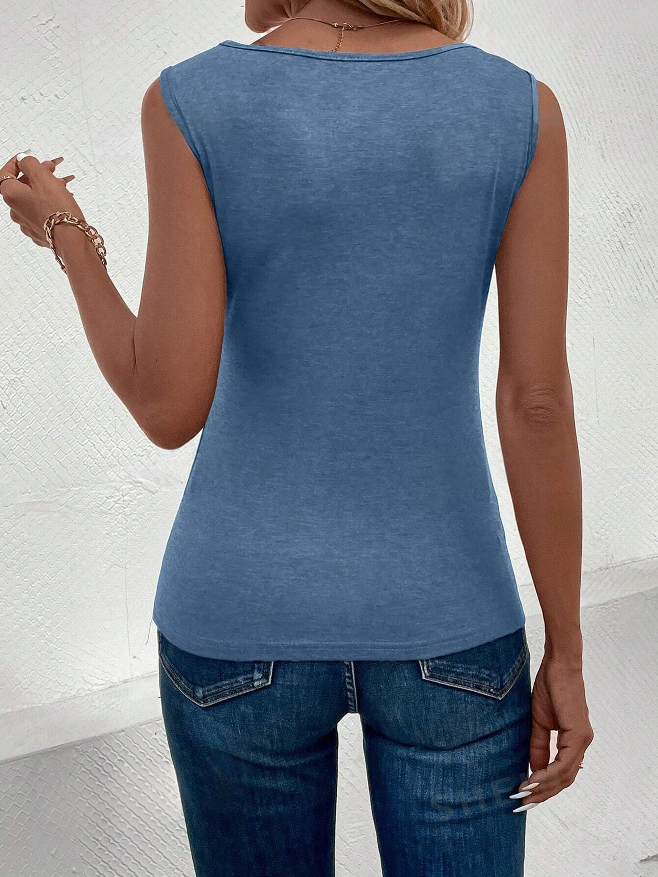 Colore : BluStile : CasualTipo di motivo : Colore unicoTipo : CanottaScollatura : Collo drappeggiatoDettaglio : Asimmetrico, Bottoni, DrappeggiatoOrlo/ Forma : AsimmetricoLunghezza : ClassicoTipo di montaggio : ScioltoTessuto : Leggero...