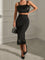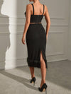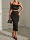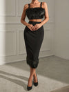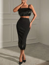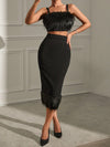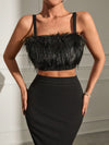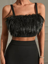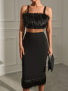 Completo da donna in due pezzi con dettagli in piuma tinta unita