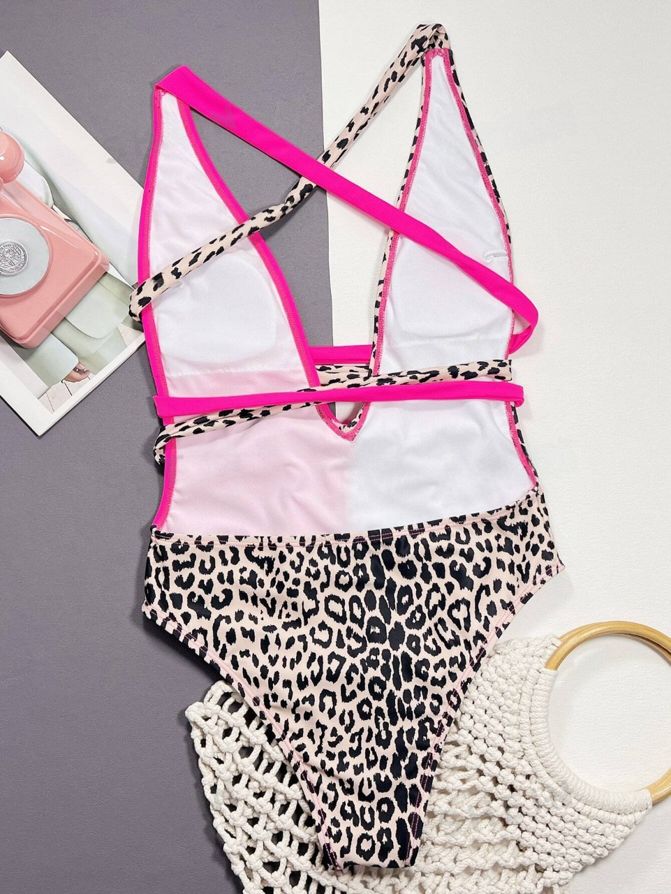 Costume intero leopardato incrociato profondo