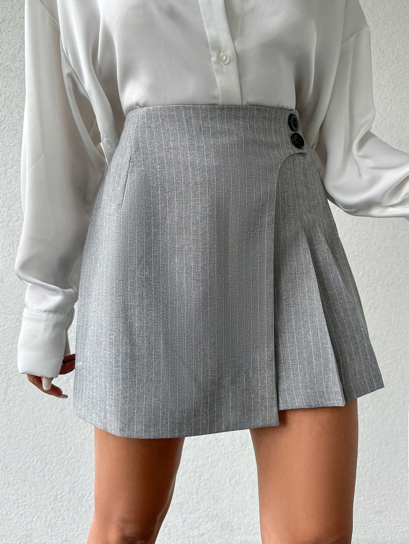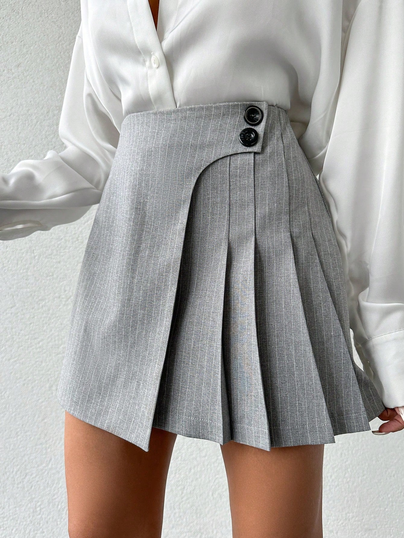 Dettaglio : Plissettato, Bottoni, CernieraTasca : NonTipo : Gonne a pantaloncino, PlissettatoStile : EleganteFoderato per un maggiore calore : NonTipo di motivo : Colore unicoFodera : SfoderatoColore : Grigio ChiaroLinea...