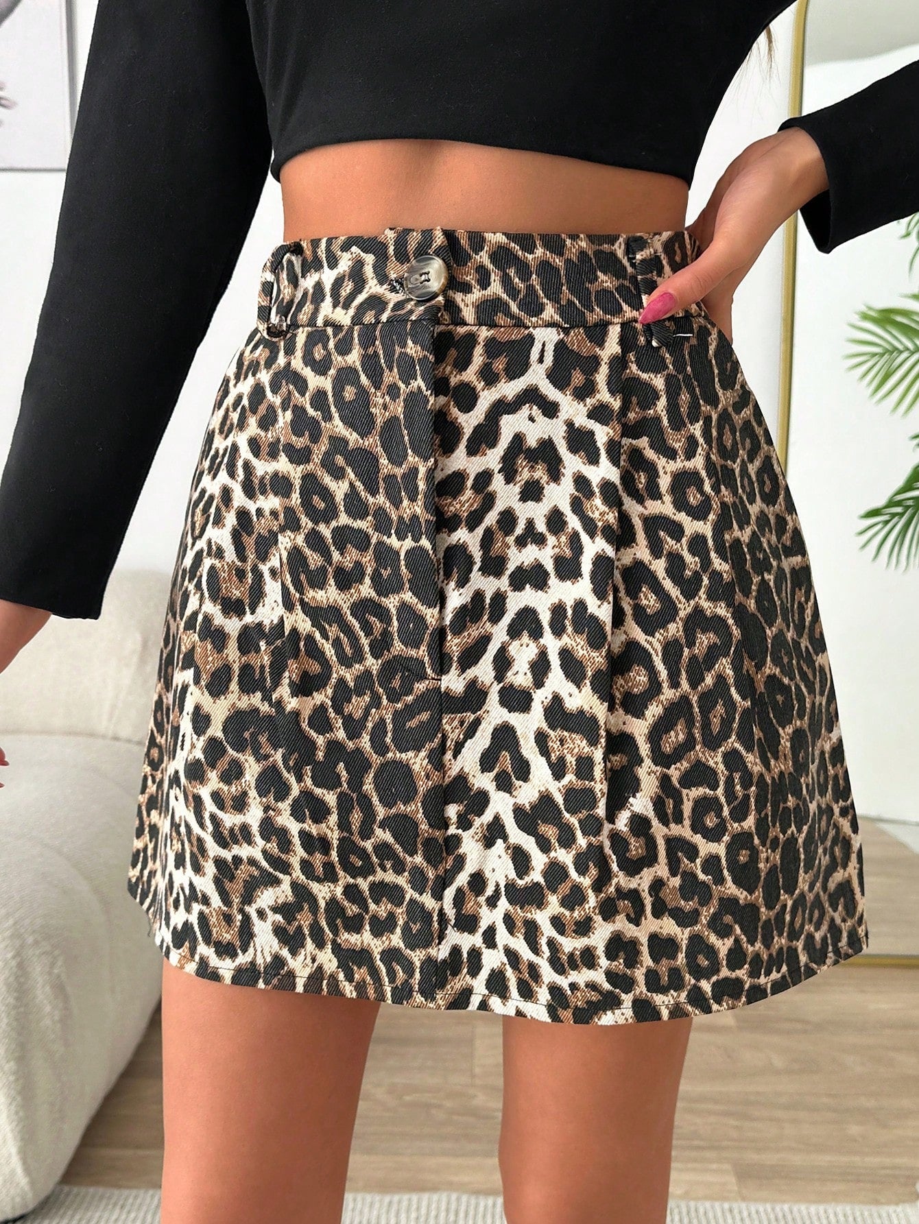 Gonna casual in stile da strada, plissettata, con stampa leopardata, da donna