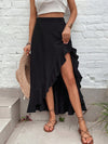 Gonna con orlo a fessura vita alta con bordo a volant