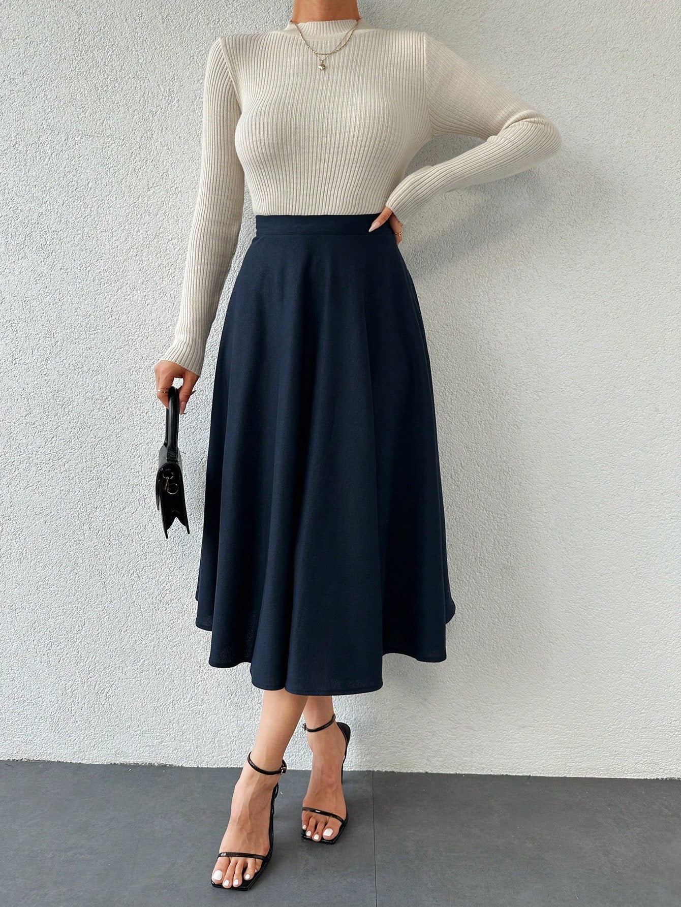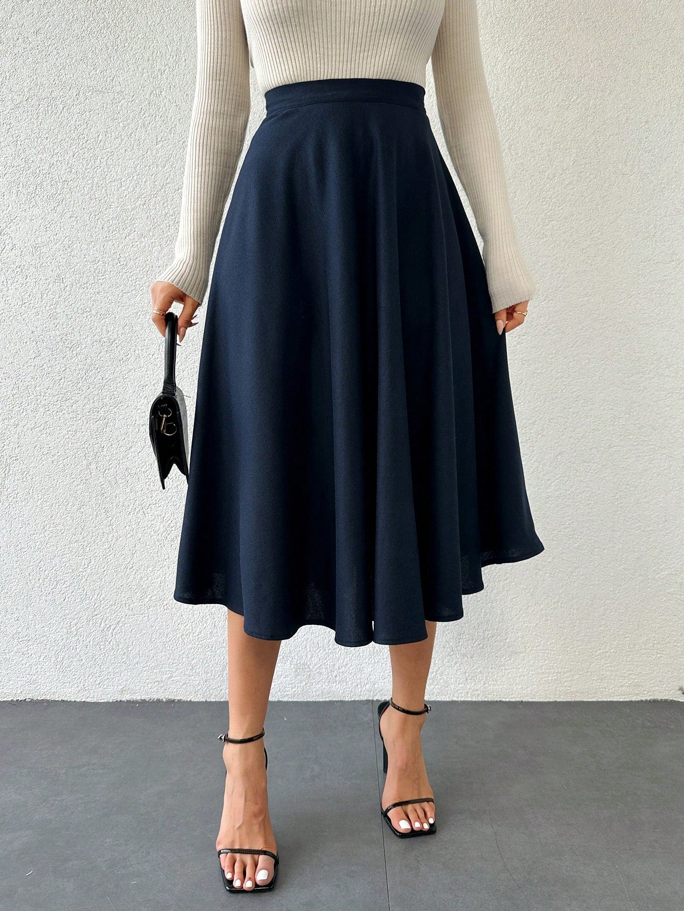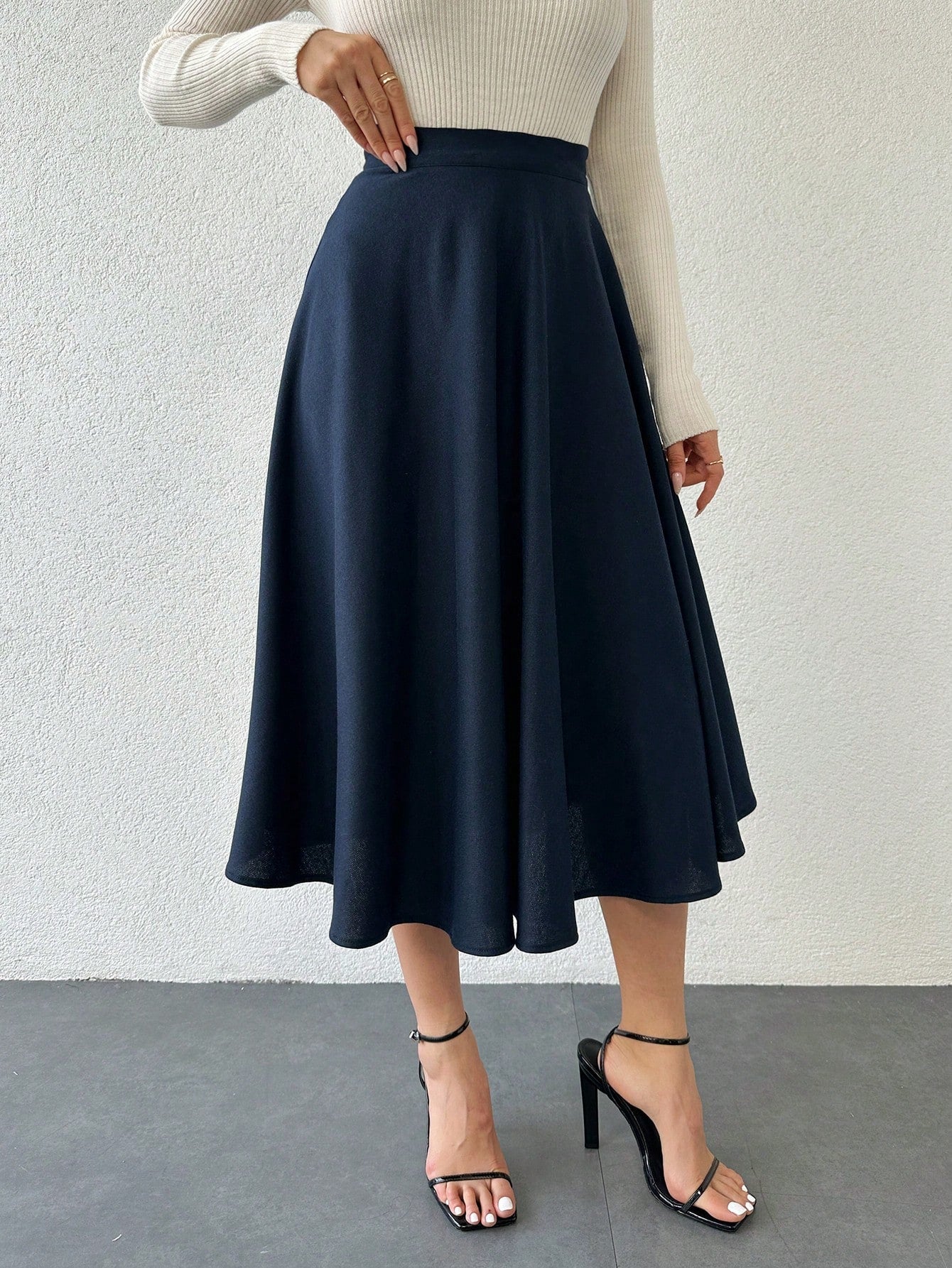 Gonna Di Media Lunghezza Versatile Alla Moda Casual In Tinta Unita