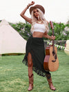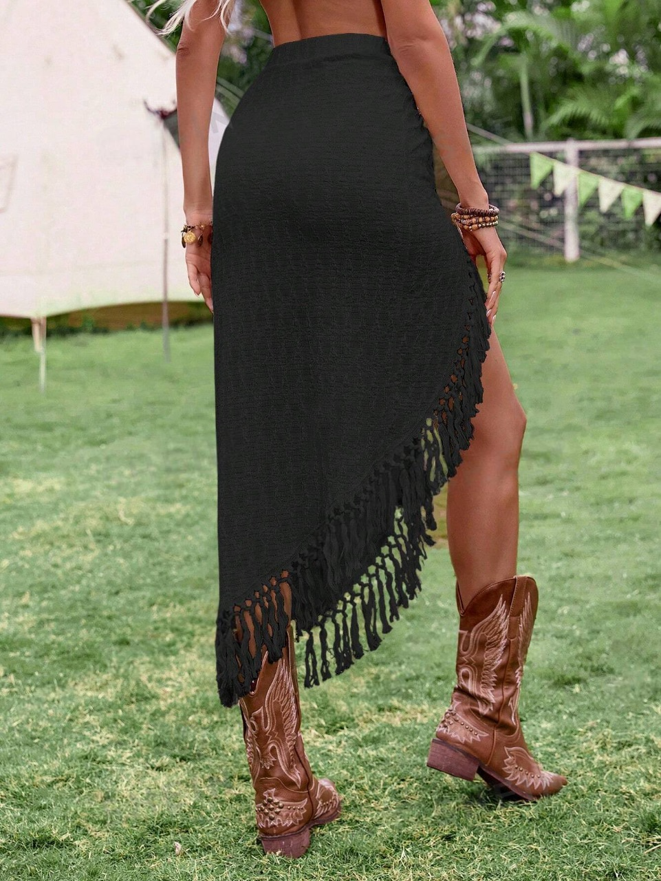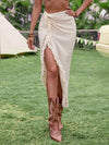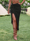 Gonna irregolare da donna con orlo sfrangiato e twist in colore tinta unita