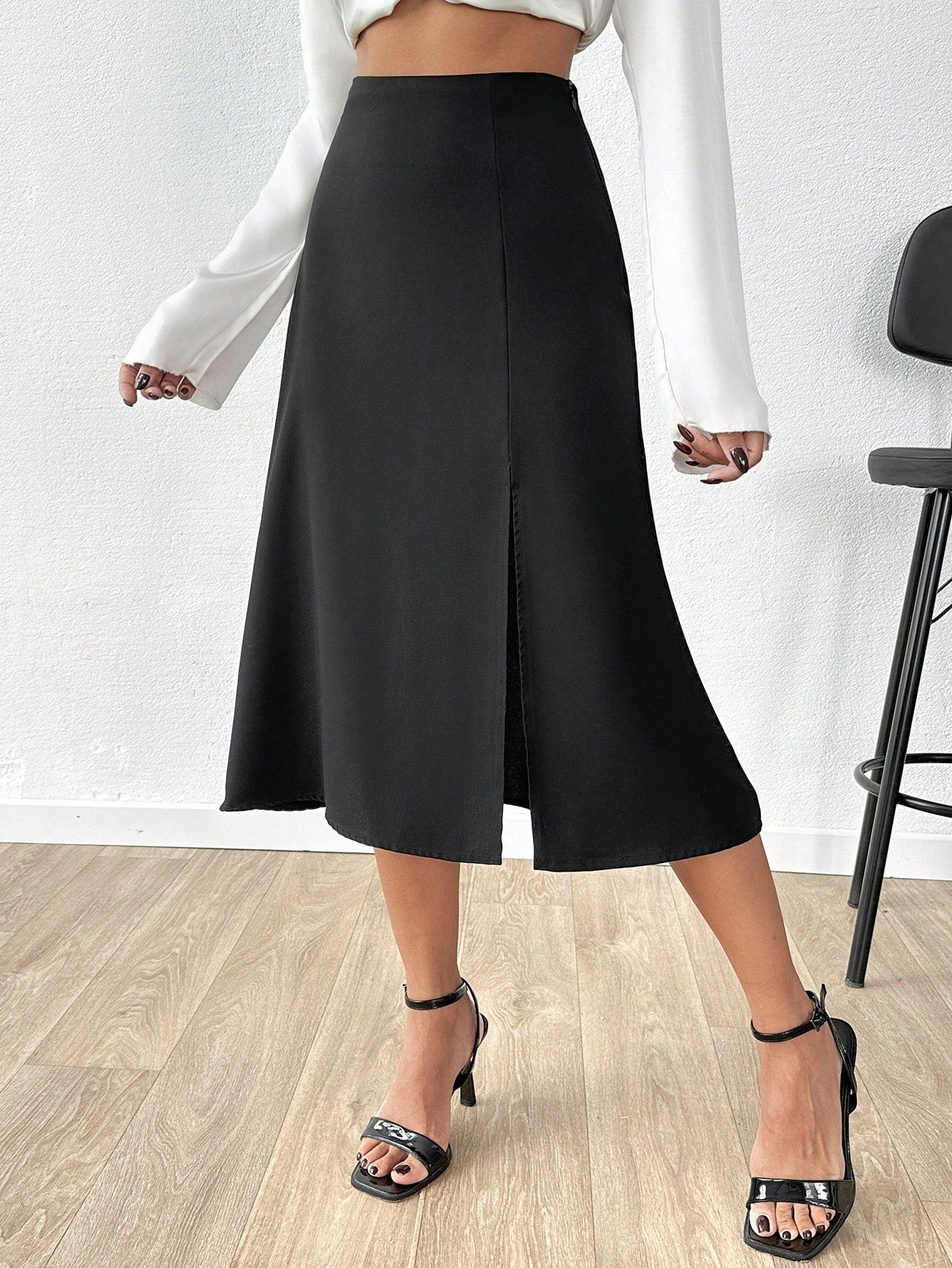 Gonna lunga elegante da lavoro con spacco alto e colore unito per donna