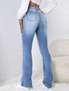 Jeans a gamba svasata con rifinitura grezza con strappati