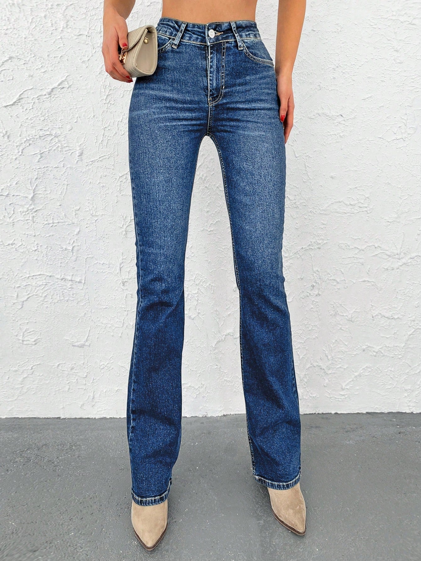 Dettaglio : Bottoni, Tasca, Cerniera Tipo : Zipper, Zampe elefante Colore : Blu lavato scuro Tipo di motivo : Colore unico Linea vita : Vita normale Lunghezza : Lungo Tipo...