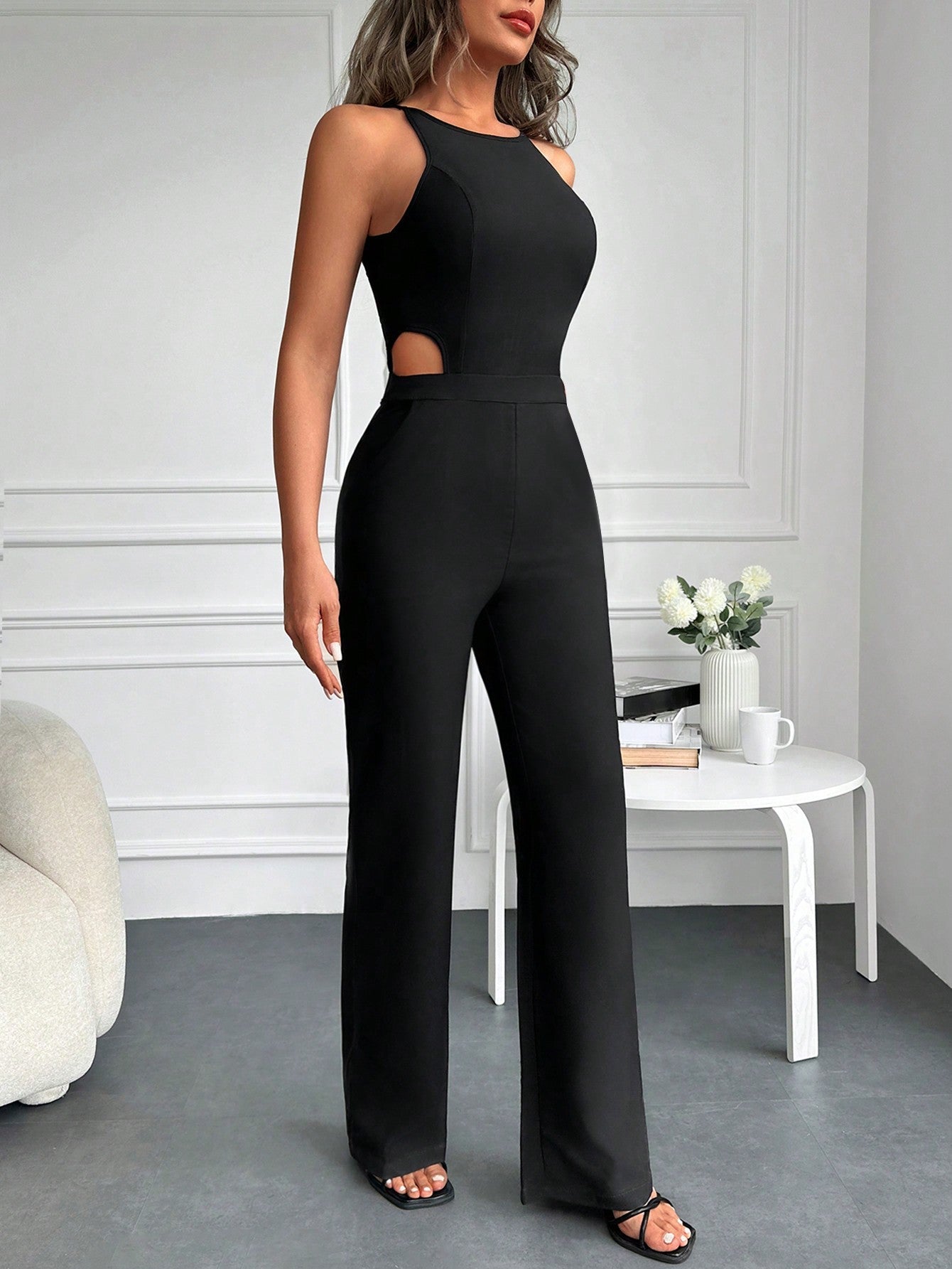Jumpsuit con bretelle sottile monocolore con gamba svasata