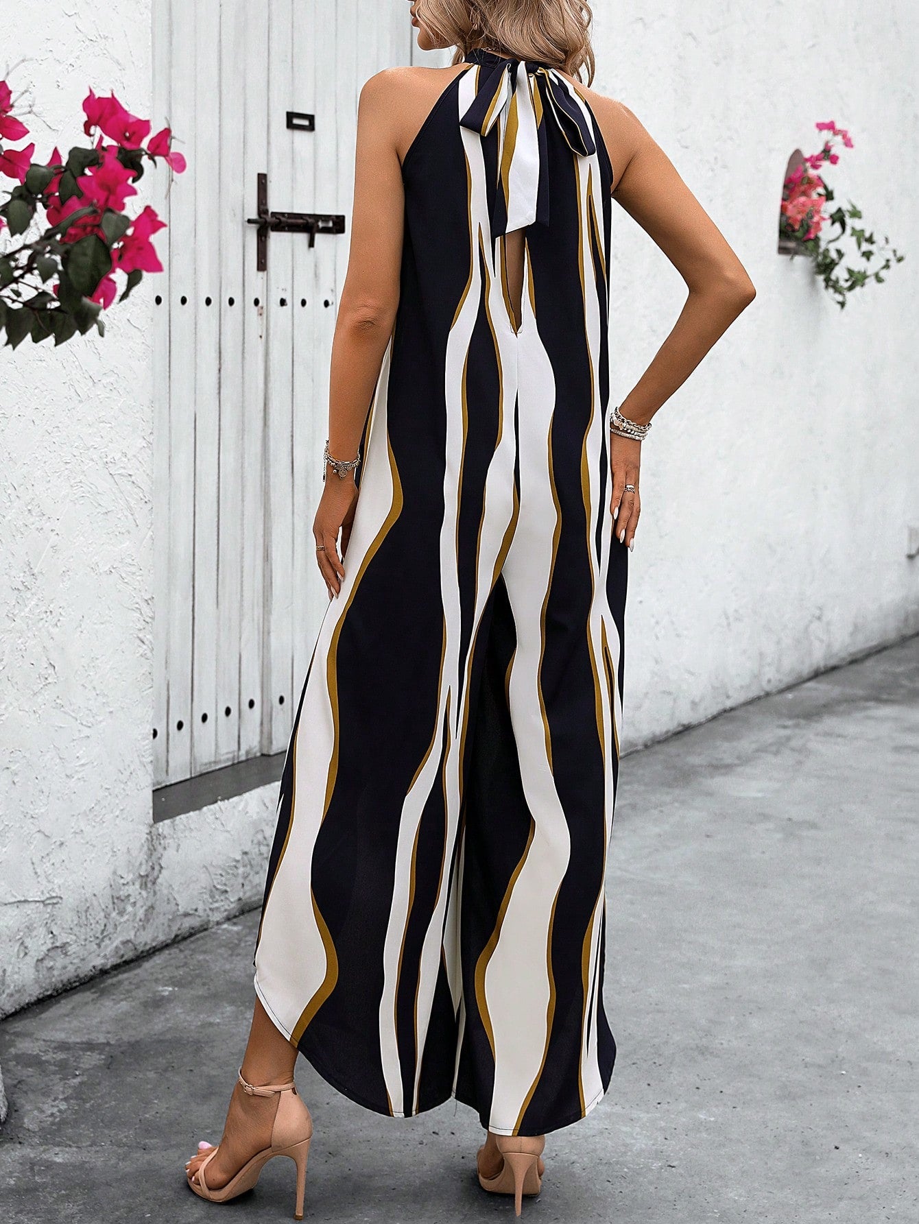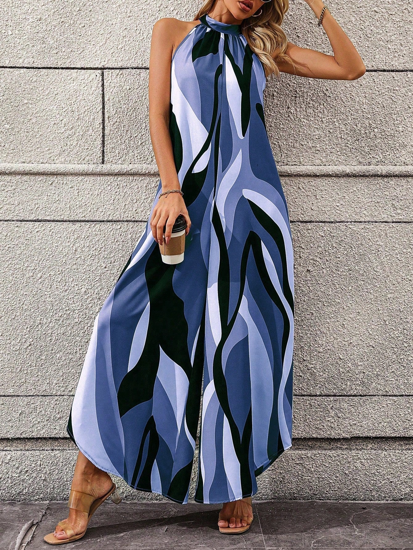Colore : Verde Oliva Stile : Bohemien Tipo : Pantaloni larghi Tipo di motivo : Blocchi di colore Scollatura : Halter Dettaglio : Nodo Lunghezza manica : Senza maniche Lunghezza...