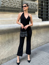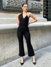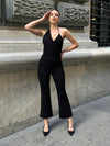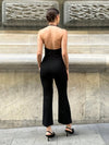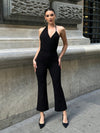 Jumpsuit monocolore con collo halter con schiena scoperta con gamba svasata