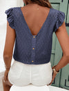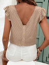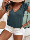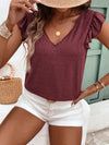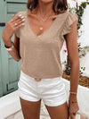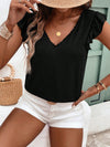 Maglietta a maniche corte estiva con schiena a V e arricciatura sul bordo