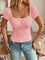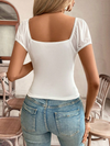 Maglietta aderente a maniche corte plissettata, scollatura quadrata profonda con maniche svasate in tessuto a maglia con pizzo floreale trasparente, top sexy per donne, adatto per feste estive, t-shirt estive