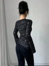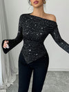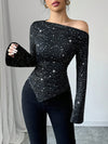 Maglietta casual da donna con maniche a campana, orlo asimmetrico, collo asimmetrico, elegante e alla moda