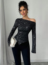 Dettaglio : Asimmetrico, Orlo di paillettes, Plissettato
