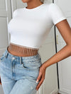Maglietta corta con strass orlo con frange