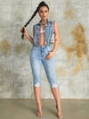 Pantaloni a 3/4 skinny con tasche oblique, vita alta con strappi e orlo grezzo per strada, pantaloni estivi per attivitˆ all"aperto