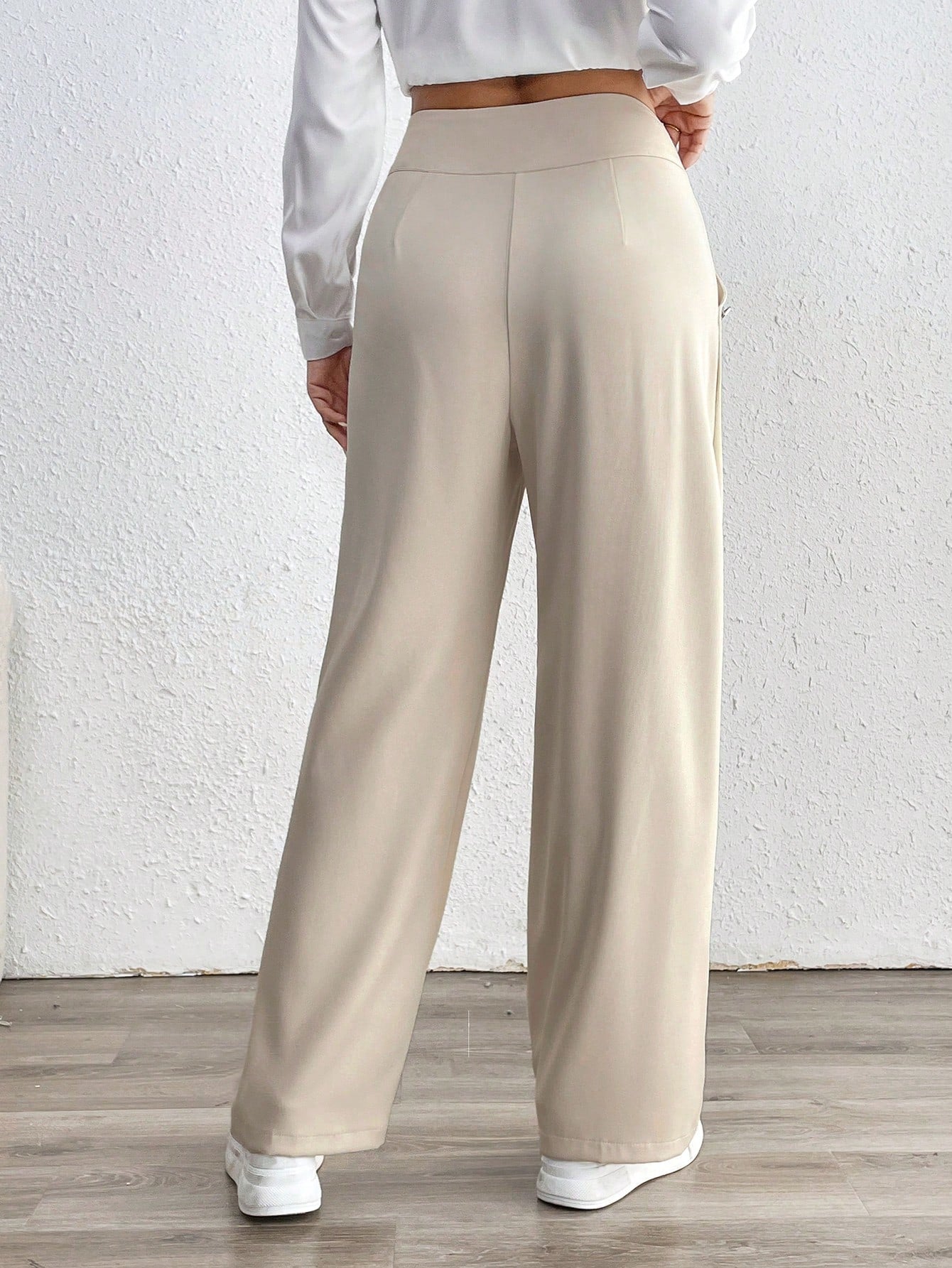 Pantaloni casual da donna a gamba dritta monocromatici con tasche e decorazione con bottoni, ideali per le vacanze