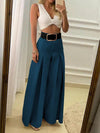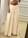 Pantaloni Casual Eleganti A Gamba Larga Di Colore Tinta Unita Da Donna