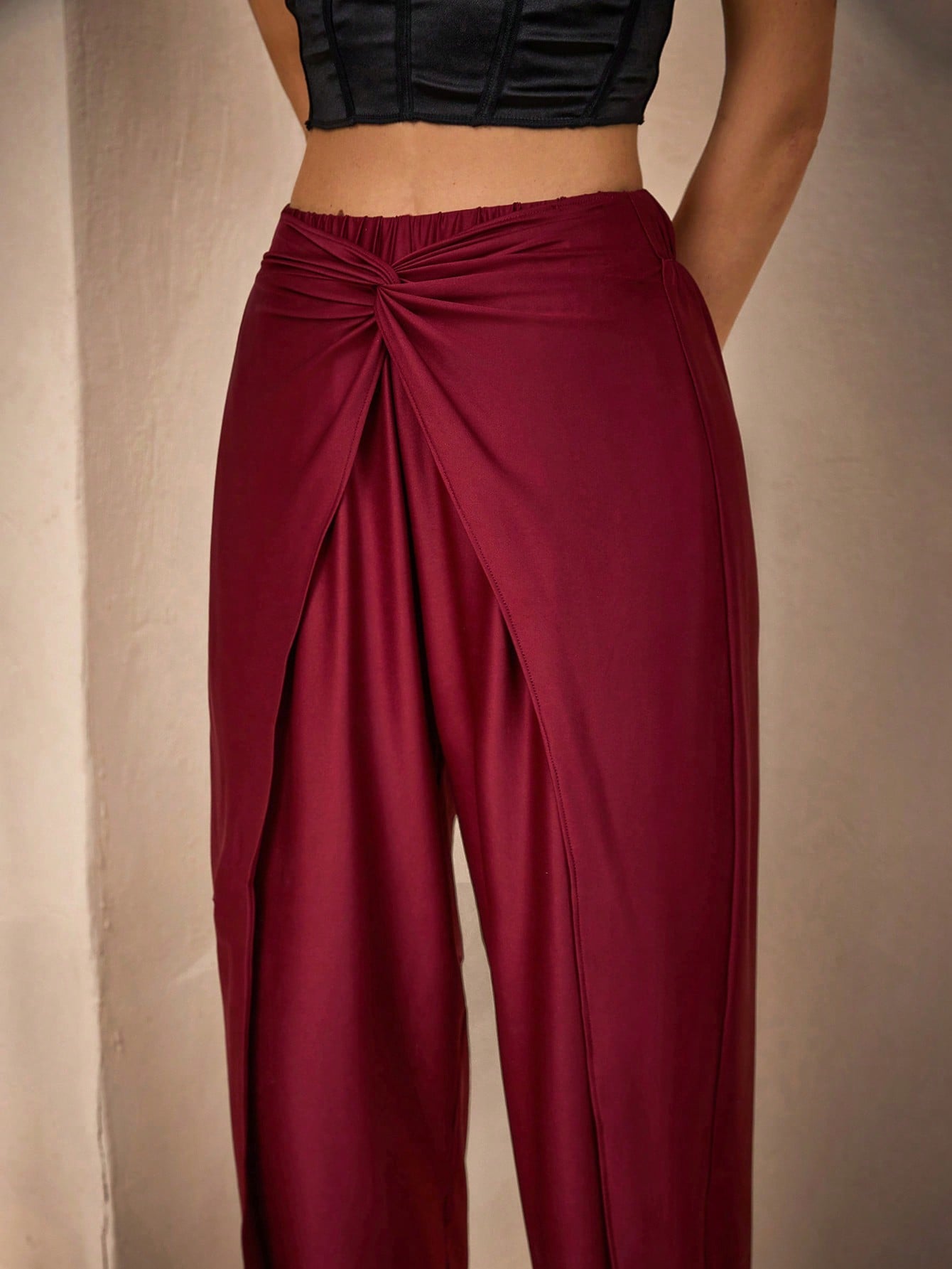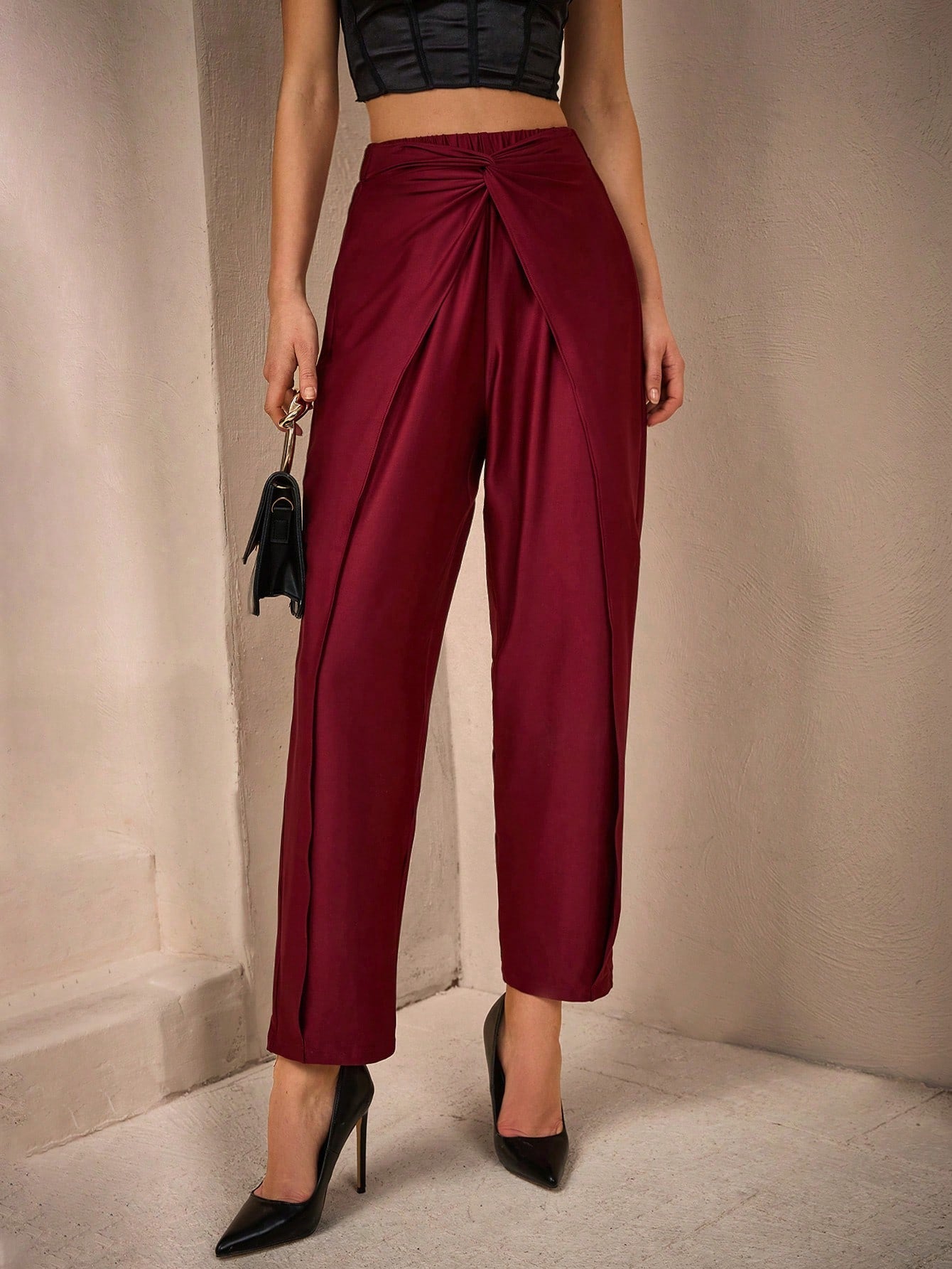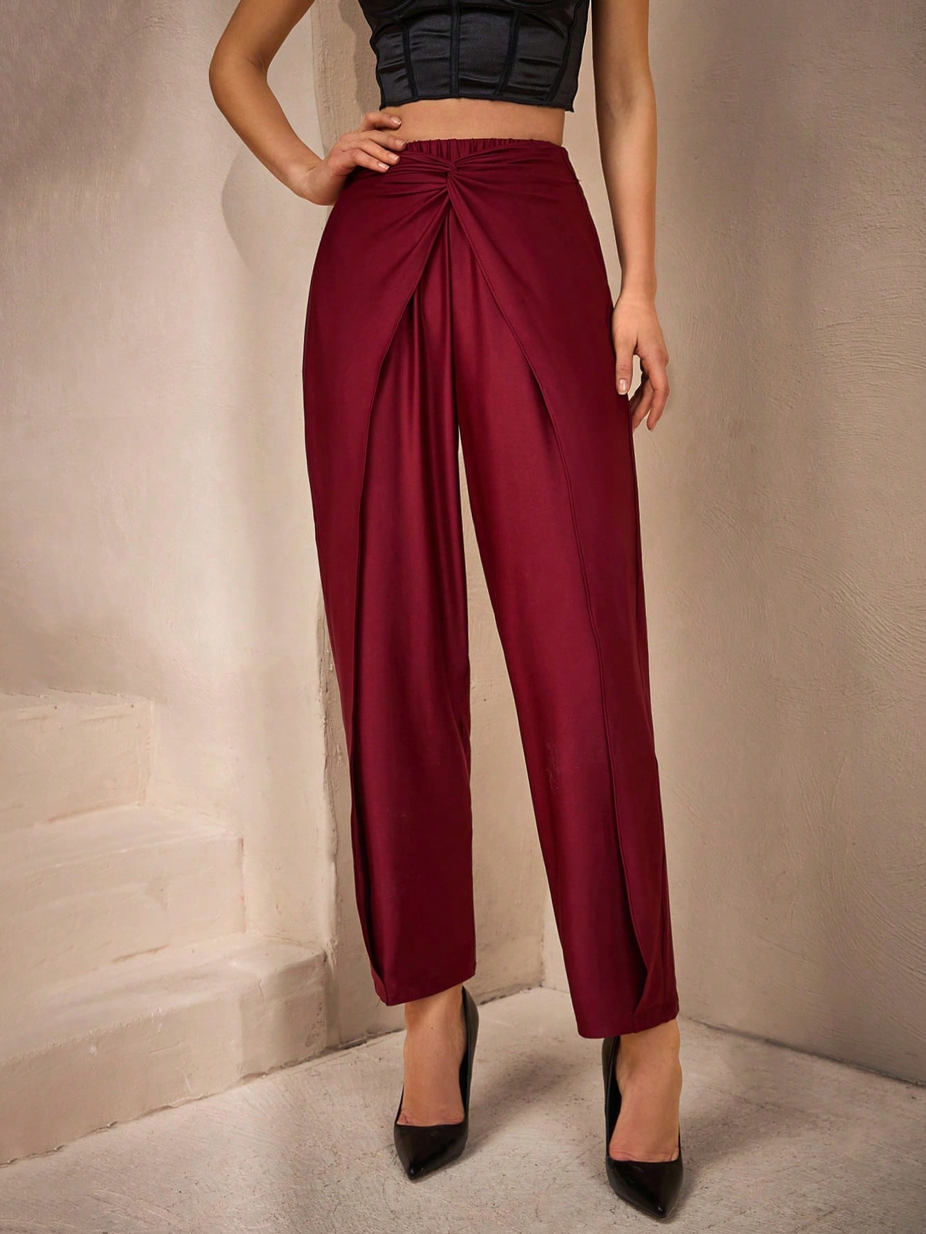 Pantaloni con vita alta, rilassati, con dettaglio a nodo sulla parte anteriore