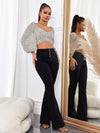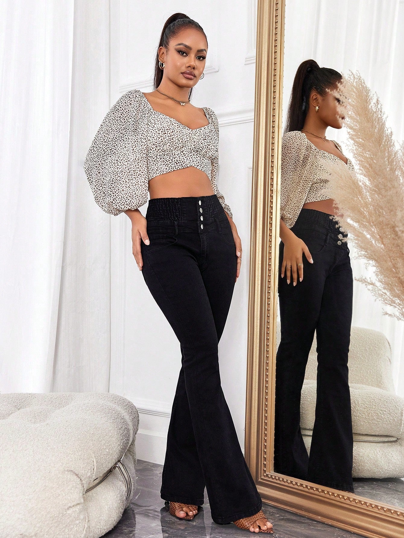 Pantaloni da donna svasati con chiusura a bottoni, sartoriali ed elasticizzati per una vestibilitˆ comoda (cotone)