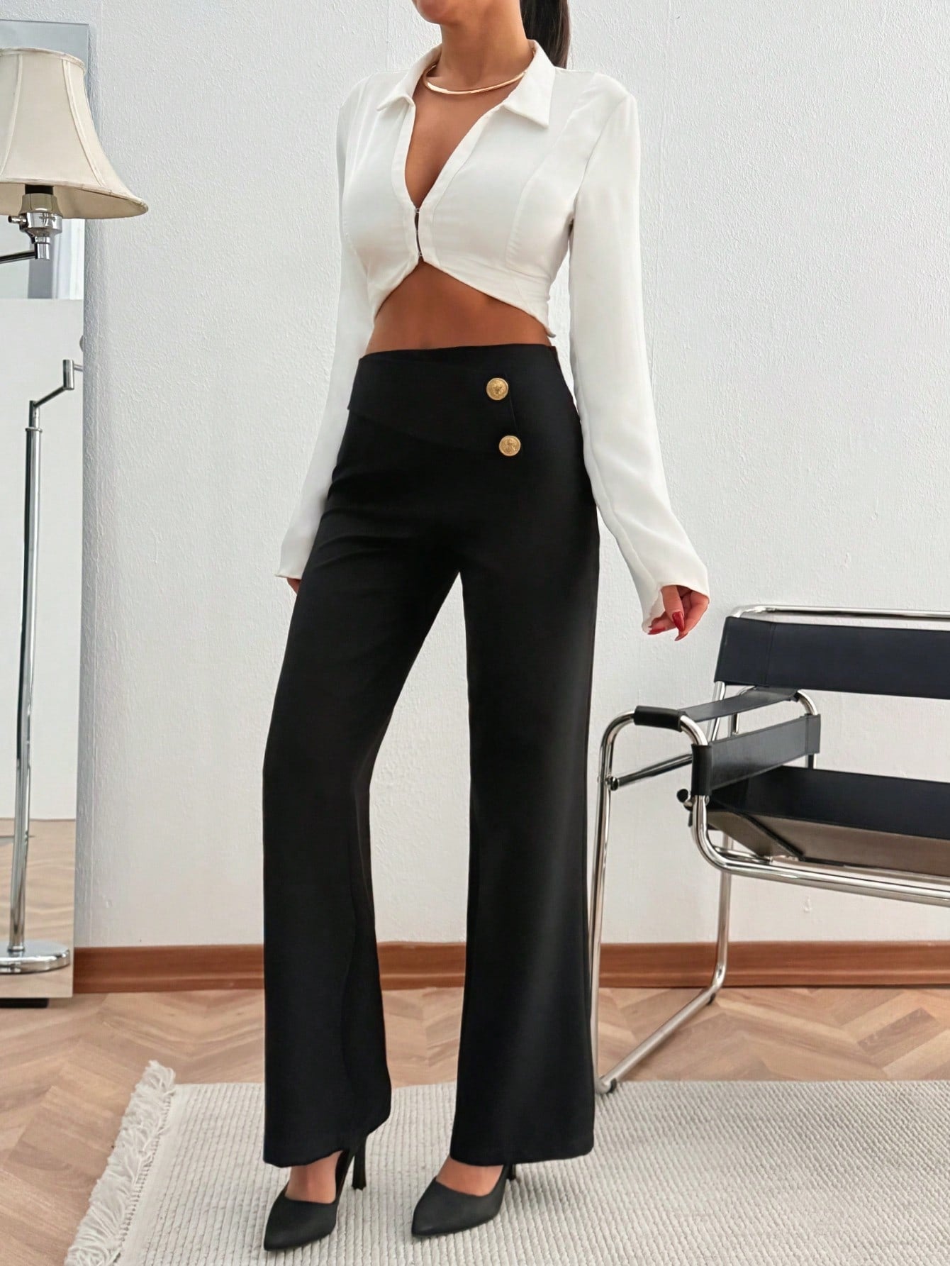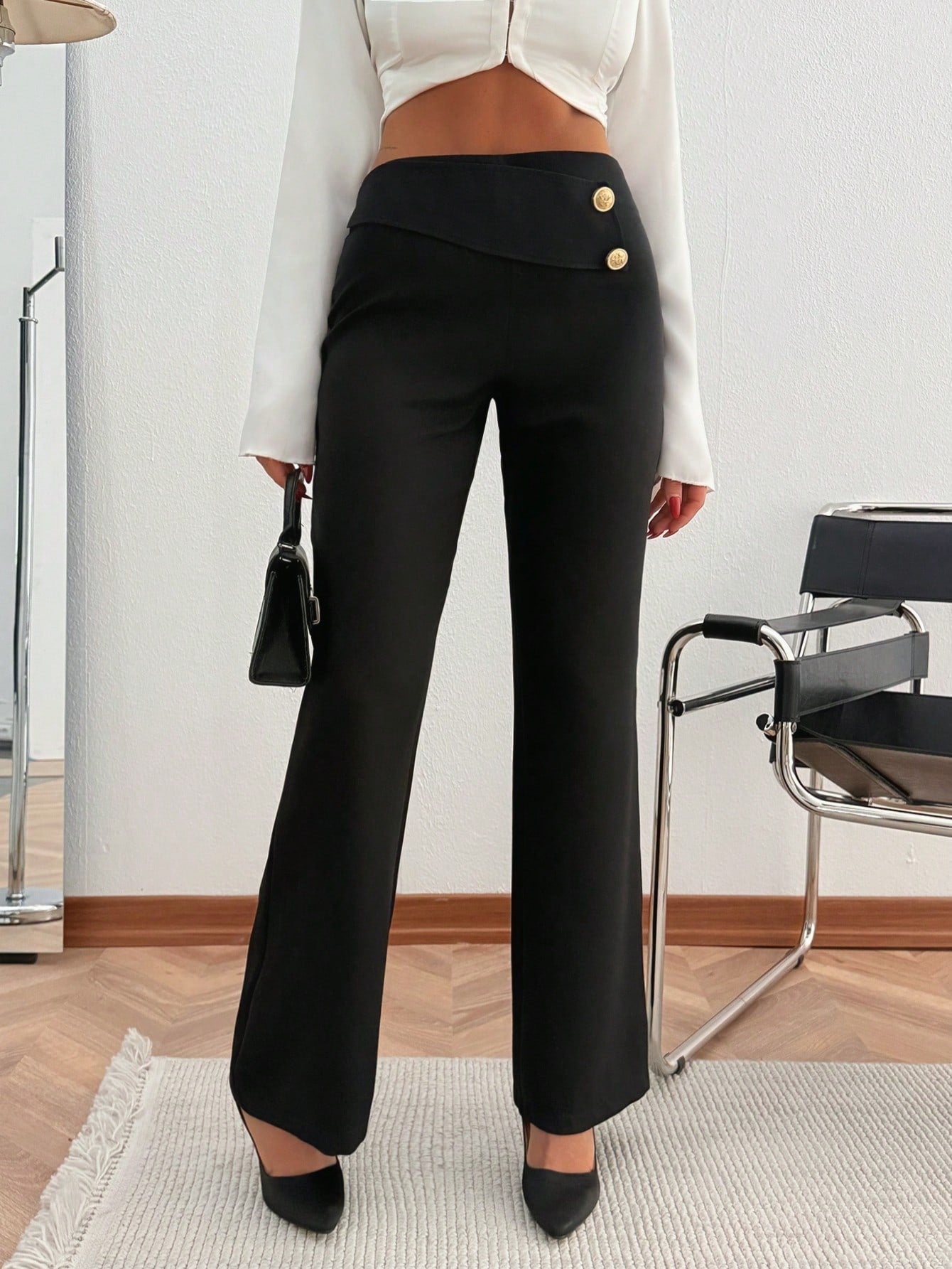 Pantaloni da tailleur da donna con dettaglio bottone