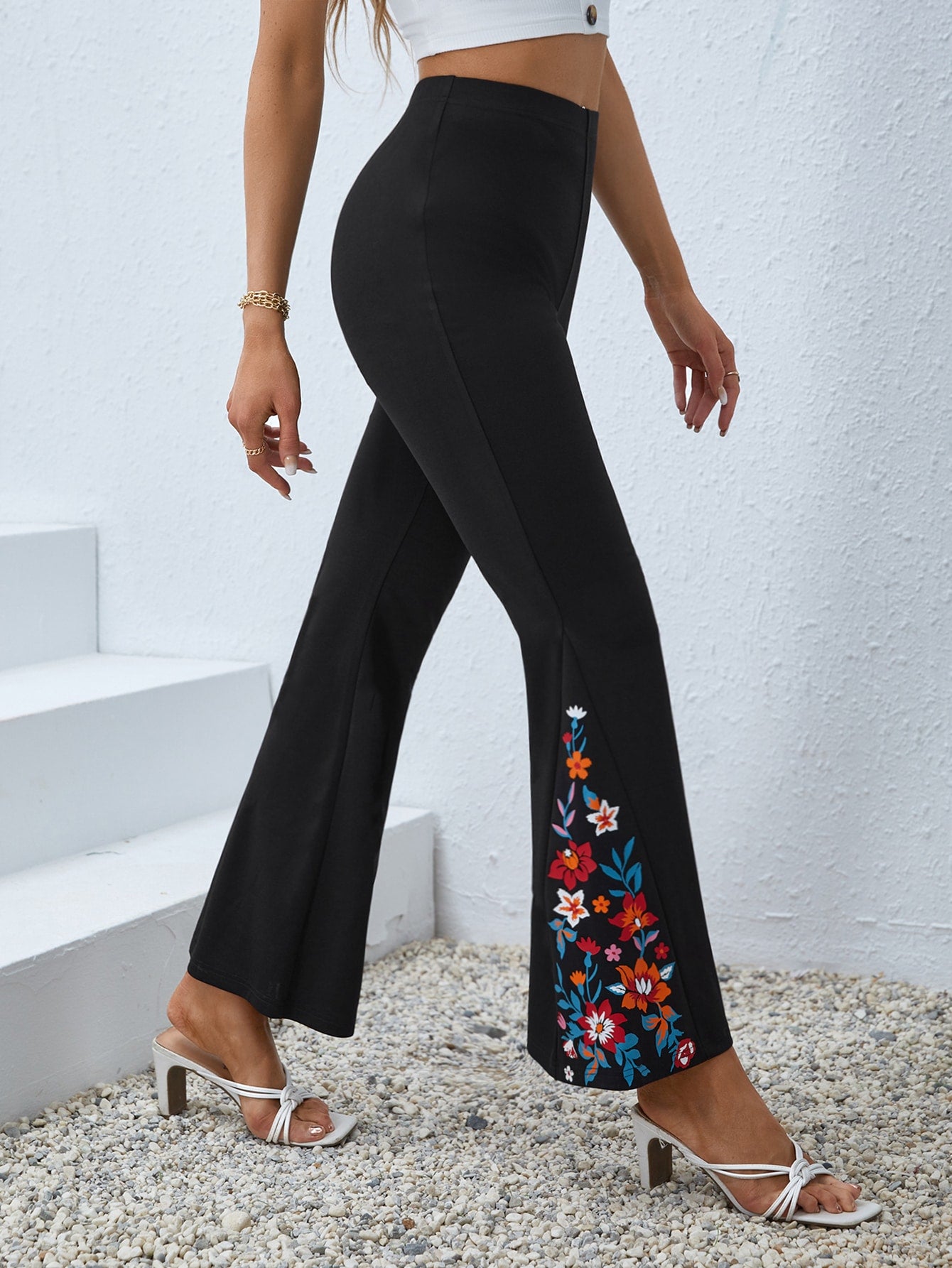 Pantaloni svasati con stampa floreale