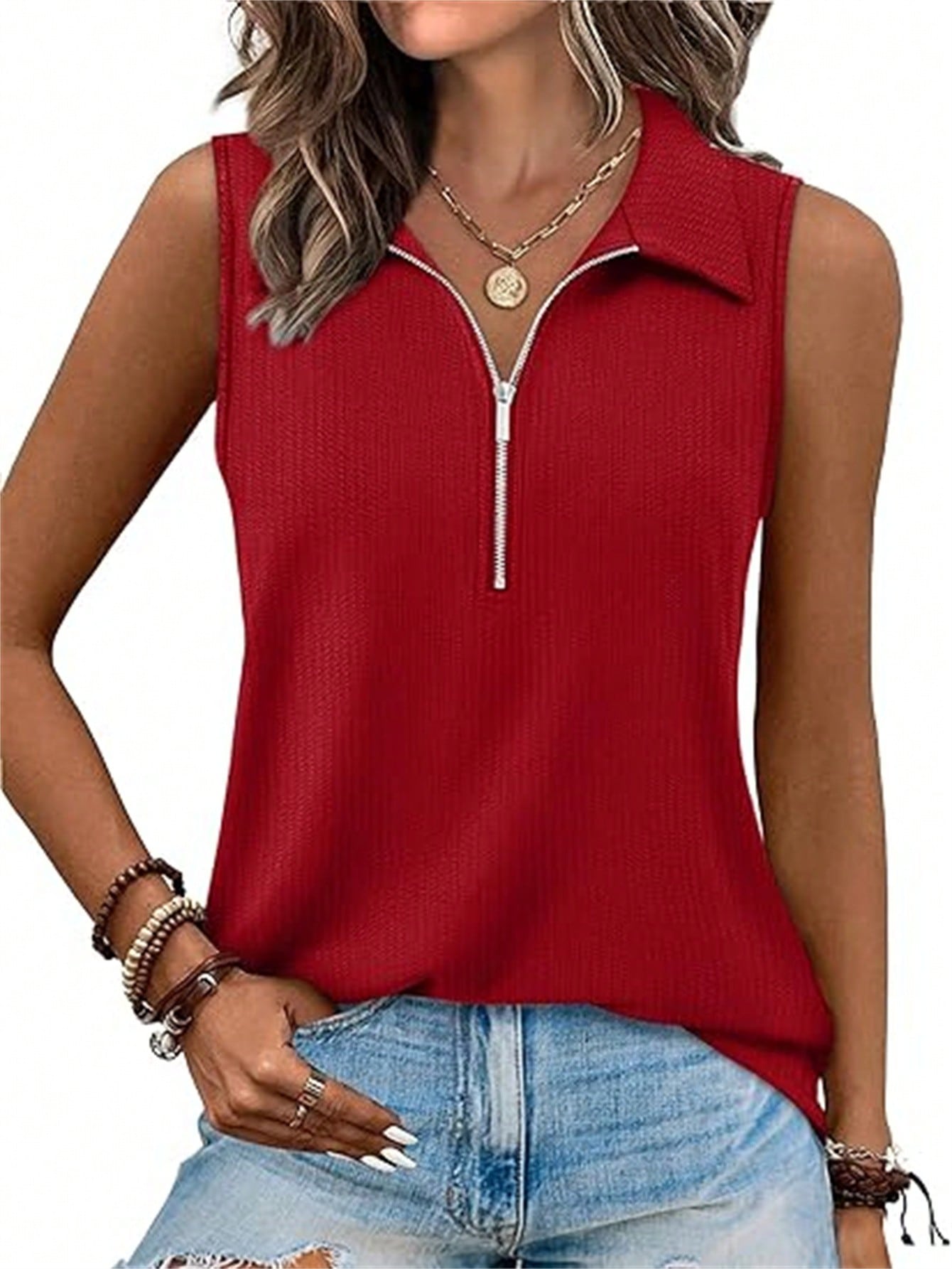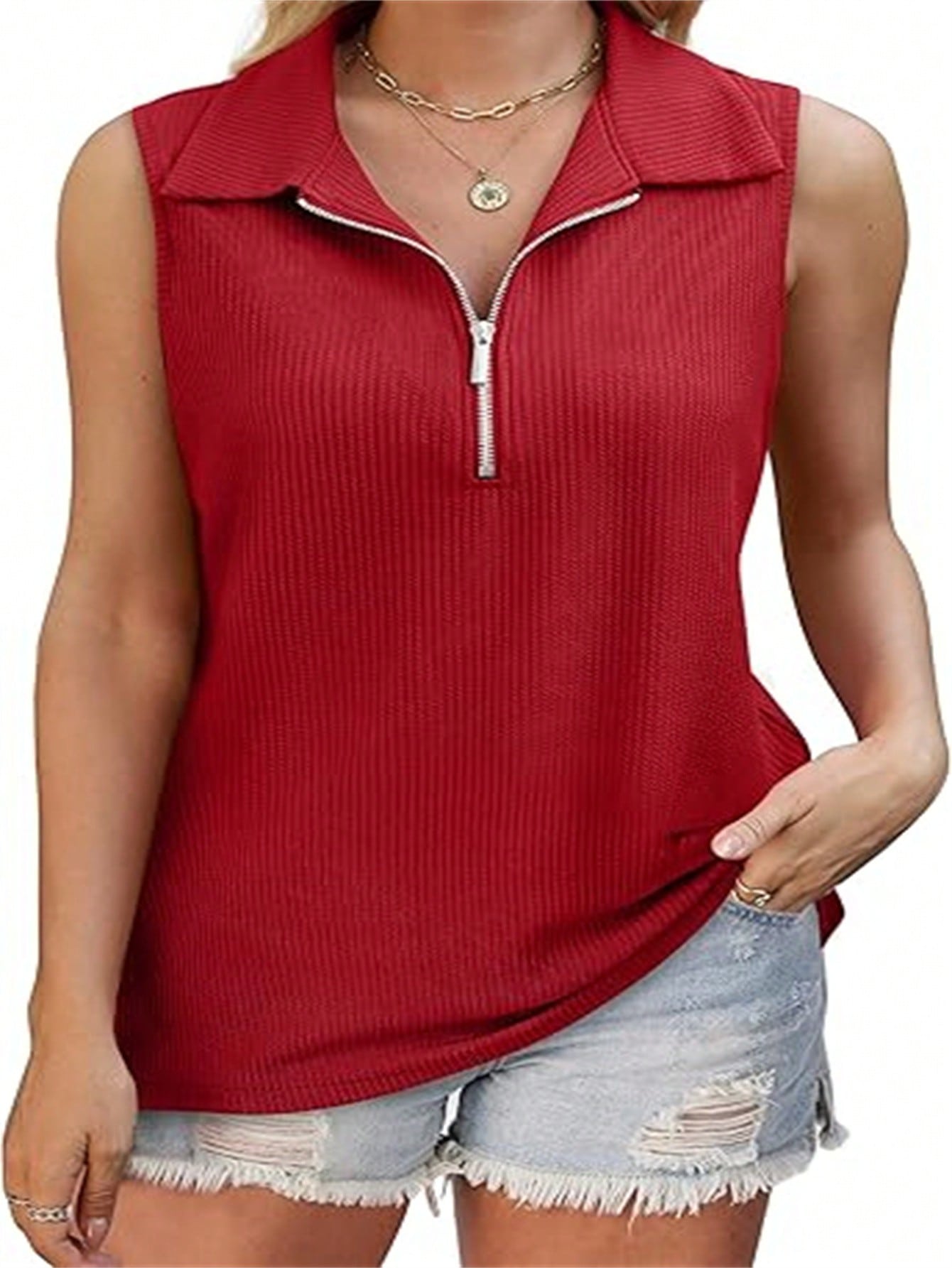 Polo senza maniche con mezza zip