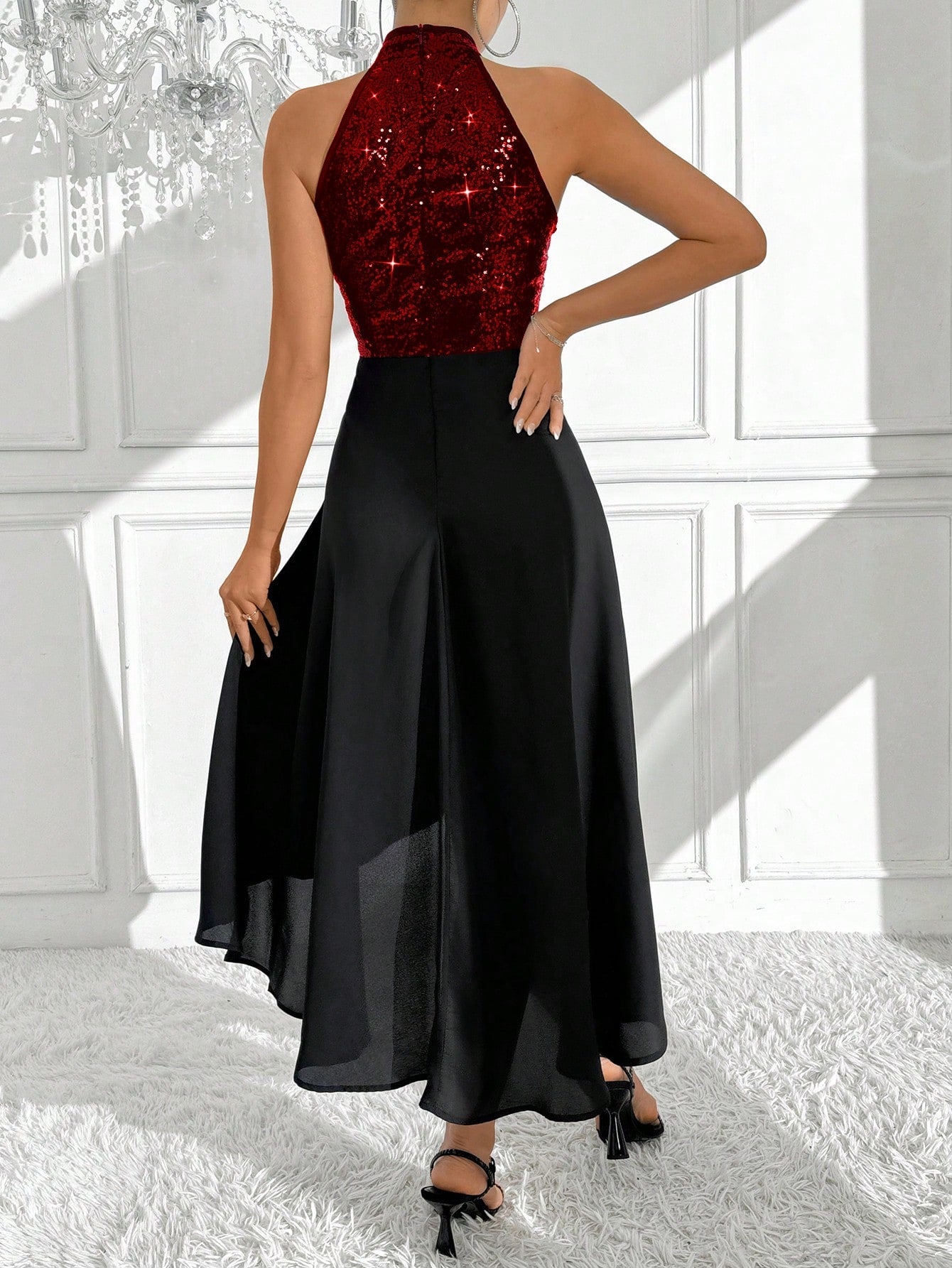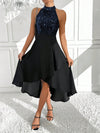 PrivŽ Abito estivo alla moda con glitter, incrocio sul collo e asimmetrico sul fondo