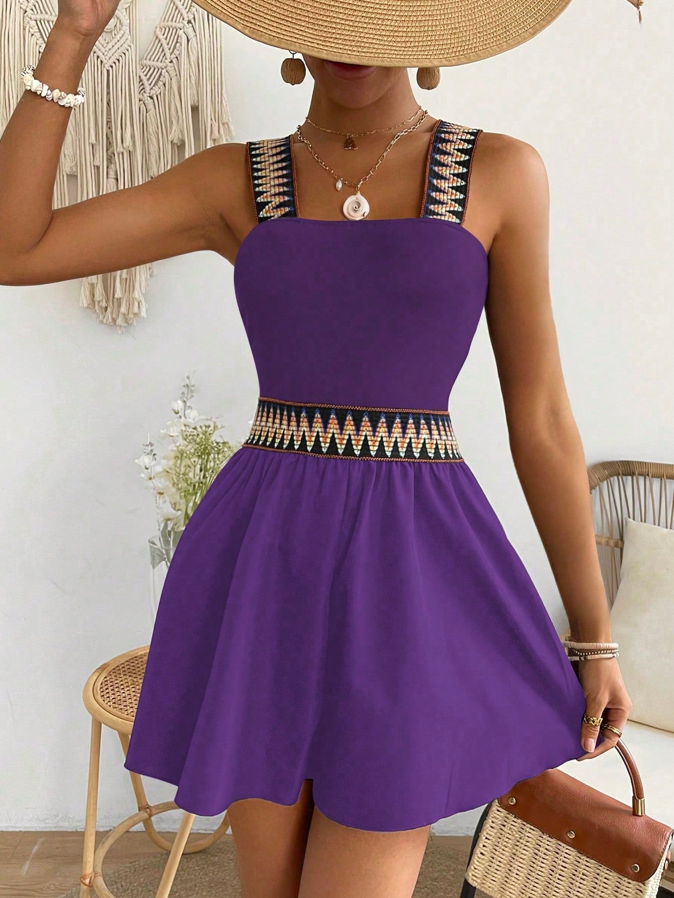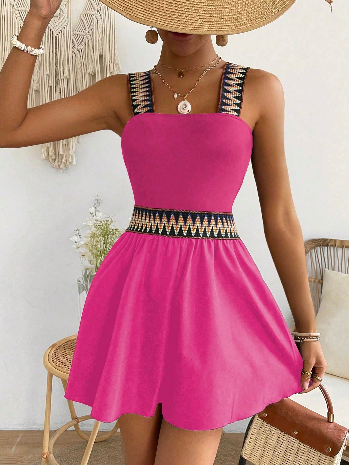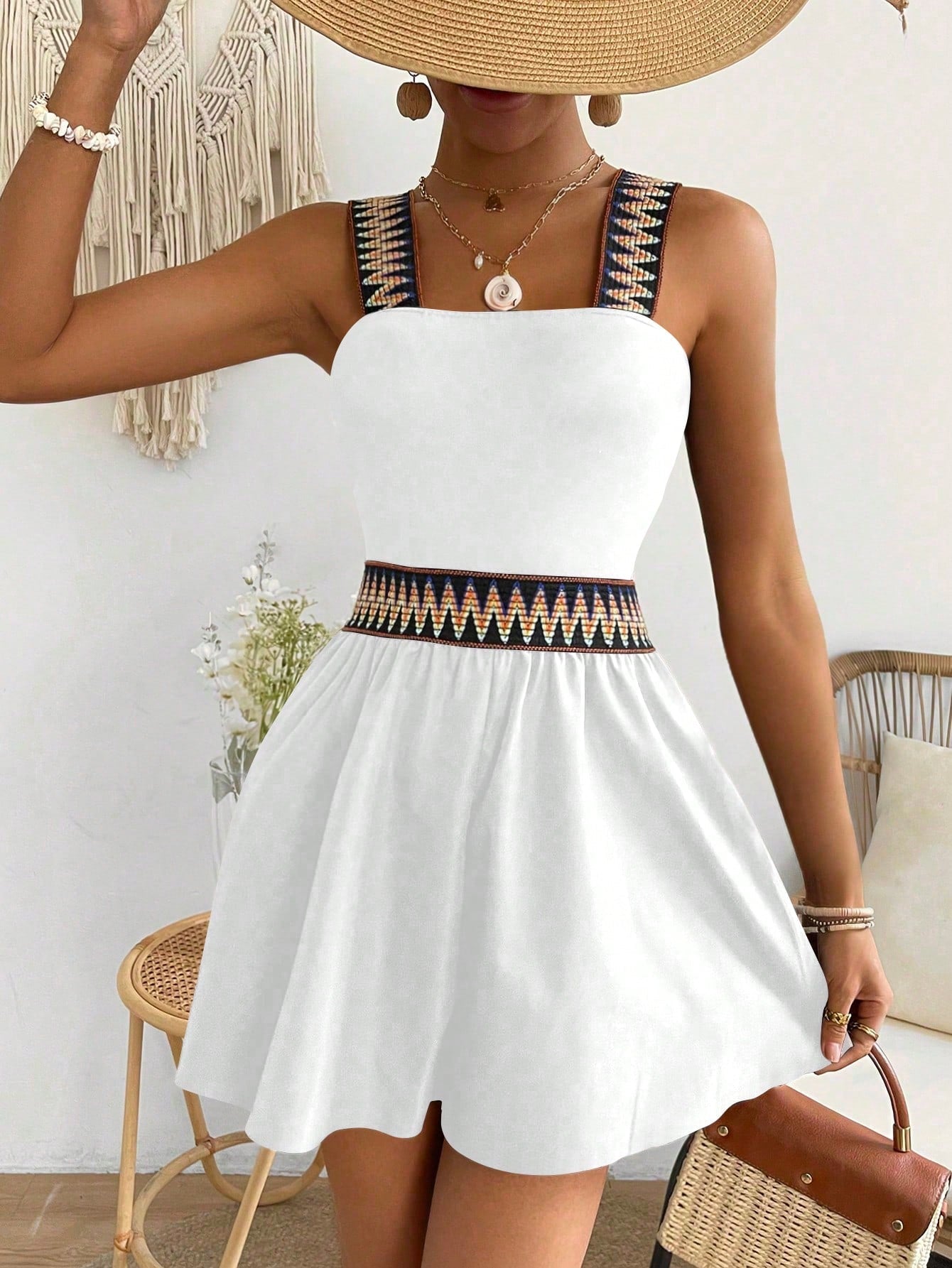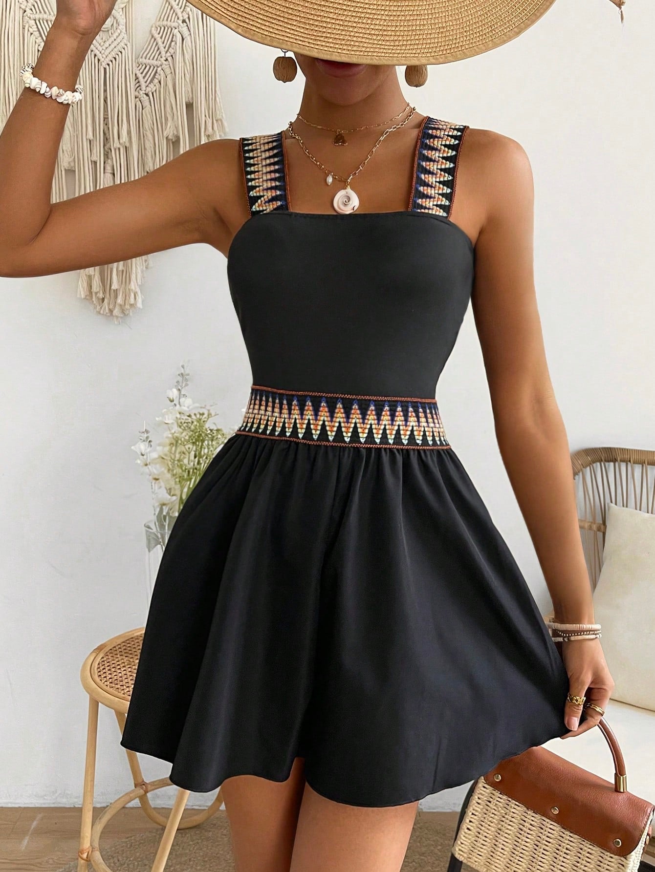 Colore : neroStile : BohemienTipo di motivo : ZigzagTipo : AltriScollatura : bretelleDettaglio : Schiena scoperta, Cerniera, NastroLunghezza manica : Senza manicheLunghezza : CortoTipo di montaggio : Forma normaleLinea vita...